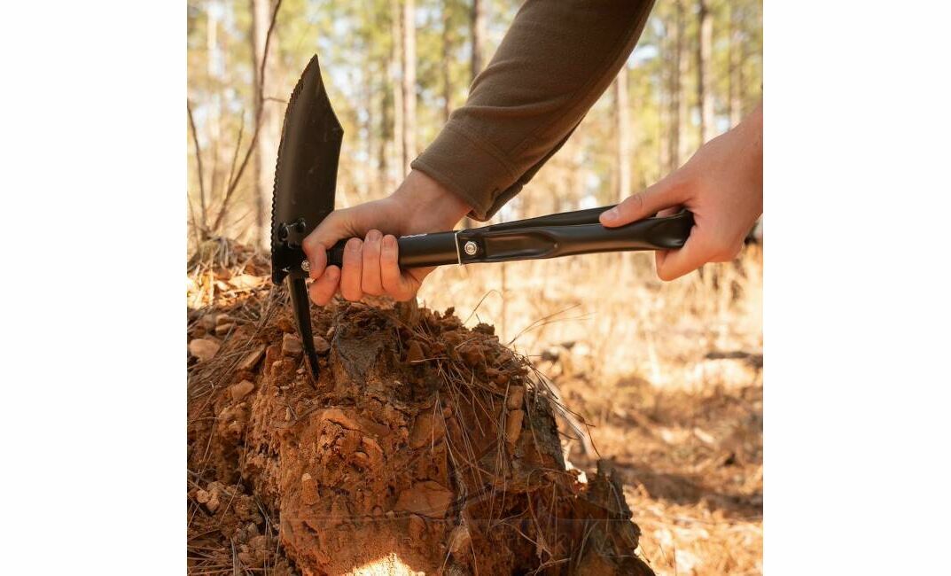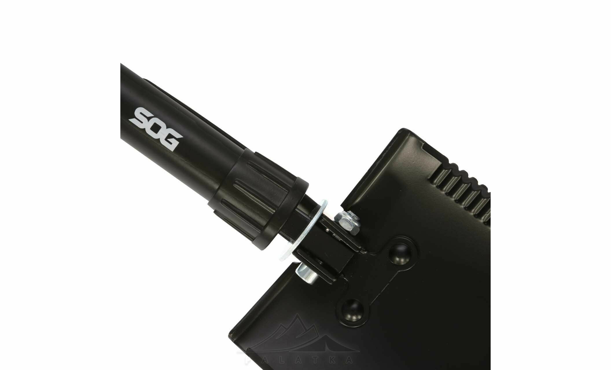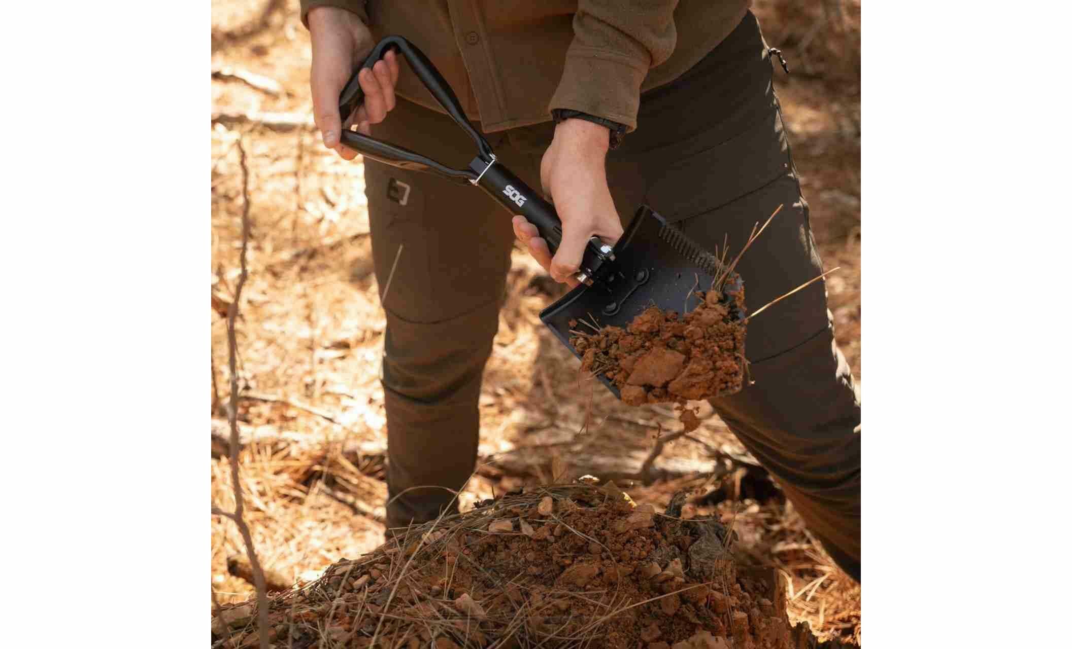 SOG Entrenching Tool XL — складана саперна лопата для тих, хто виїжджає в кемпінг, оверлендинг або експедиції, а також хоче мати в авто надійний інструмент на всякий випадок. Особливо корисна для рибалки/полювання, облаштування табору, розчищення місця під стоянку чи відкопування коліс у снігу/ґрунті.