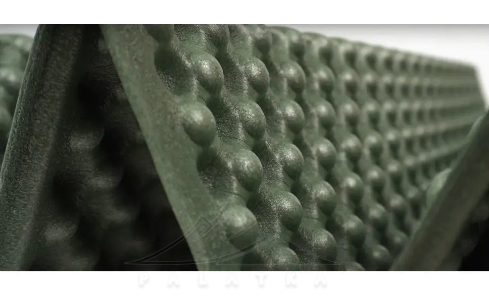 - Завдяки рельєфній поверхні збільшується висота каремату, підвищуючи теплоізоляційні властивості.