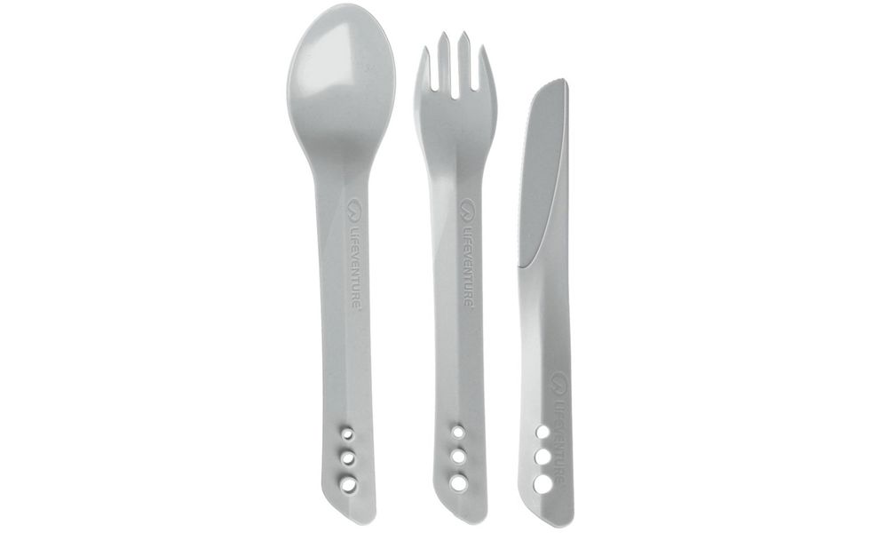 Lifeventure Ellipse Cutlery Set — універсальний набір столових приборів з міцного термостійкого пластику, що включає ложку, виделку, та ніж. Практичне доповнення для кемпінгової кухні, під час походів, та відпочинку на природі.