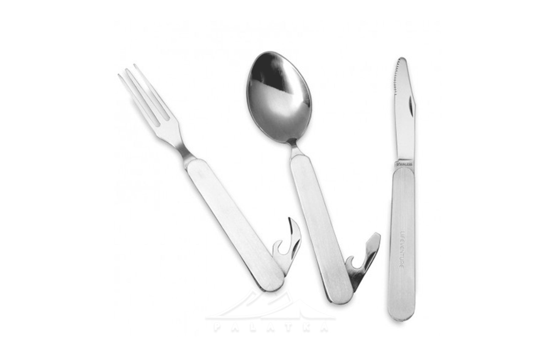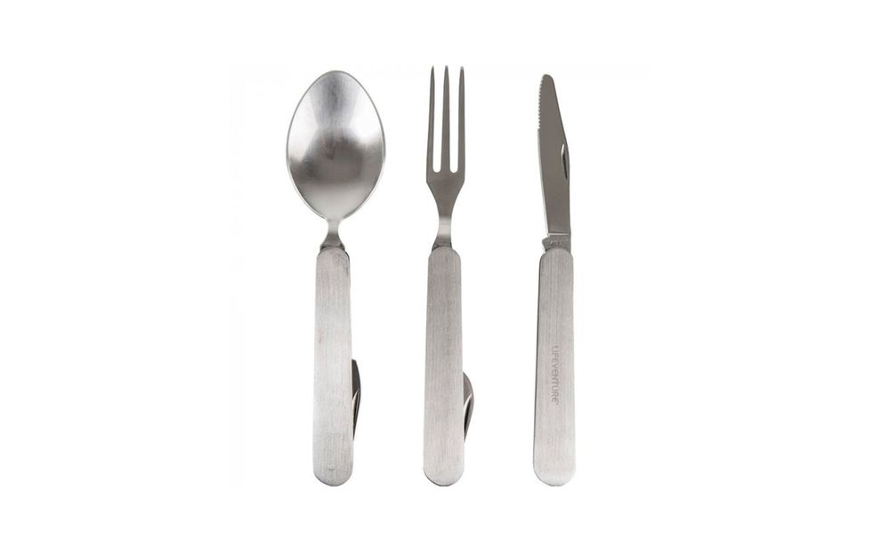 Набір столових приборів Lifeventure SS Folding — функціональний набір столових приладів із нержавіючої сталі, що складається з трьох предметів, два з яких оснащені відкривачками. Забезпечить комфортне використання у вашій кемпінговій кухні.