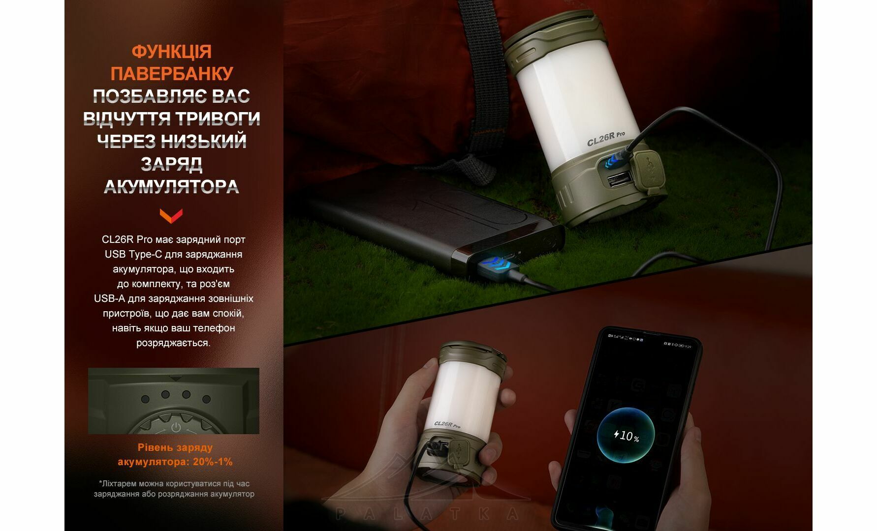 Кемпінговий ліхтар з акумулятором та функцією павербанк Fenix CL26R Pro (White Marble): червоне світло, USB Type-C
