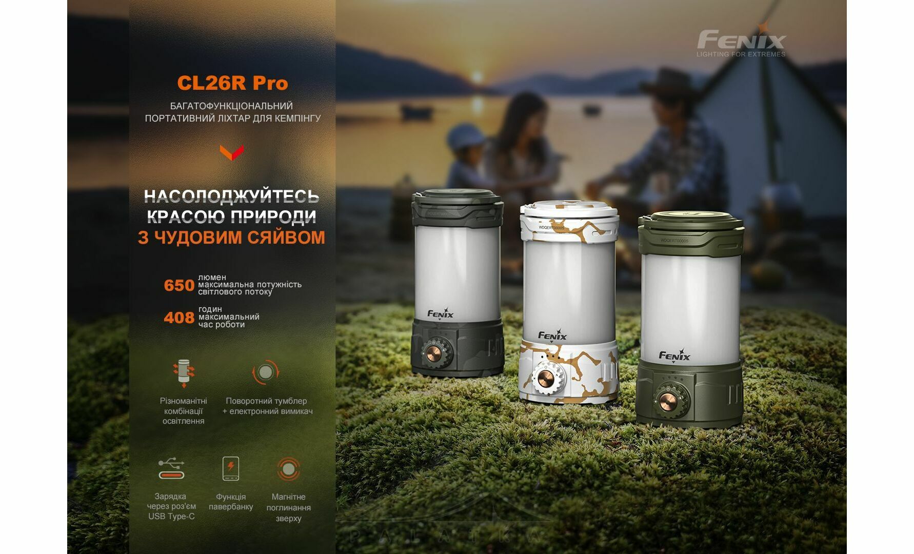 Кемпінговий ліхтар з акумулятором та функцією павербанк Fenix CL26R Pro (Olive): червоне світло, USB Type-C