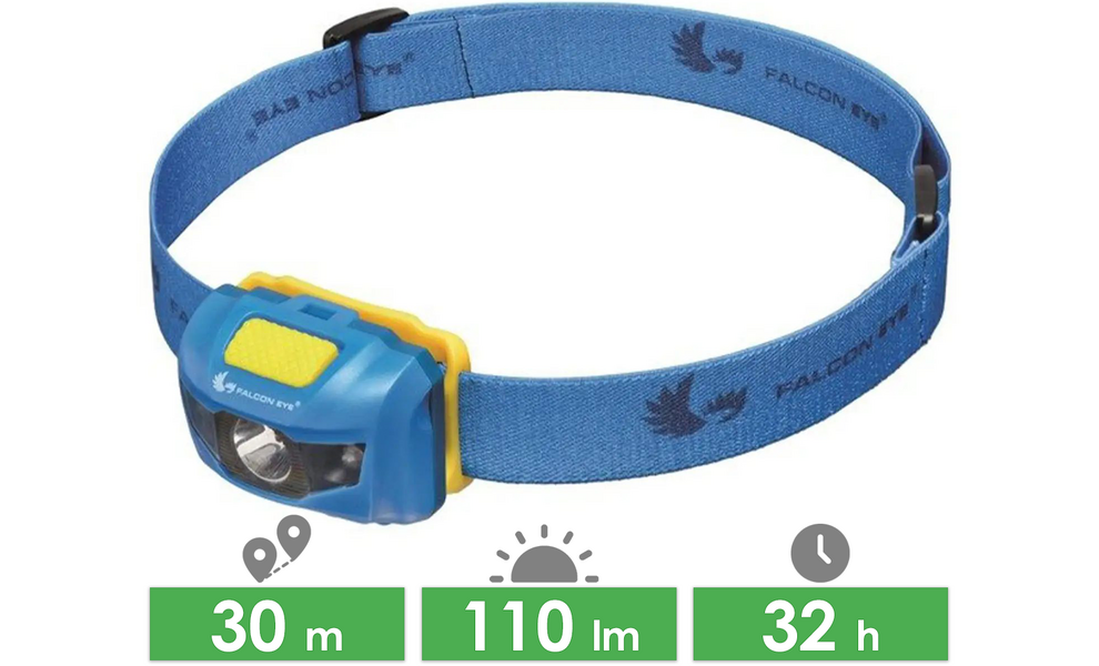 Ліхтар налобний Falcon Eye FHL0011 — функціональний ліхтар, що має 5 положень нахилу на 45º, а також обладнаний білим та червоним світлодіодом. Практичний вибір для використання у туристичних цілях, для спорту та повсякденного життя.