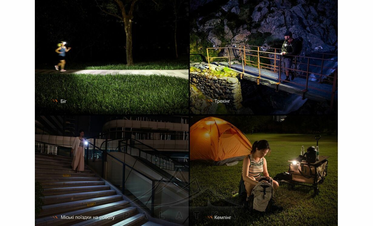 - Білий промінь з колірною температурою 6500–7500K формує контрастне, чітке освітлення, ідеальне для кемпінгу, прогулянок, побутових завдань та активностей на відкритому повітрі.