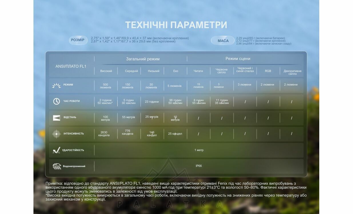 Зверніть увагу: у високому режимі час роботи вказано з урахуванням автоматичного зниження яскравості при активації захисту від перегрівання.