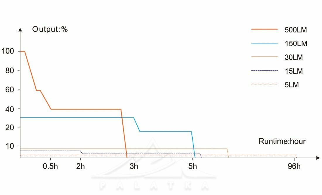 Зверніть увагу: у високому режимі час роботи вказано з урахуванням автоматичного зниження яскравості при активації захисту від перегрівання.