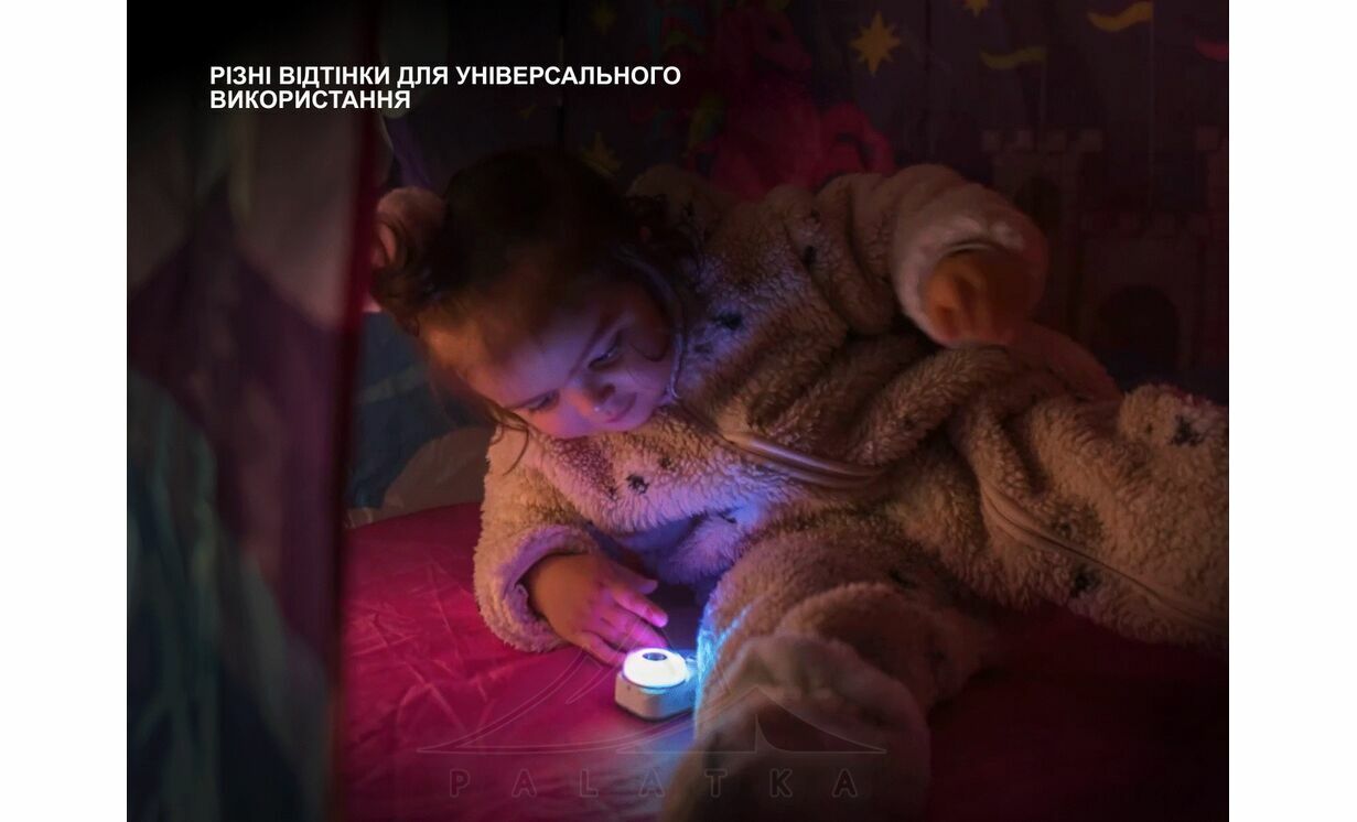 - Режими роботи: п’ять атмосферних світлових ефектів та чотири рівні яскравості білого світла дозволяють підлаштувати освітлення під будь-яку ситуацію — від кемпінгу до аварійних умов.