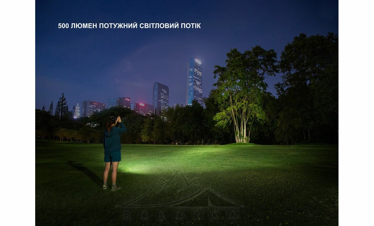 - Білий промінь з колірною температурою 6500–7500K формує контрастне, чітке освітлення, ідеальне для кемпінгу, прогулянок, побутових завдань та активностей на відкритому повітрі.