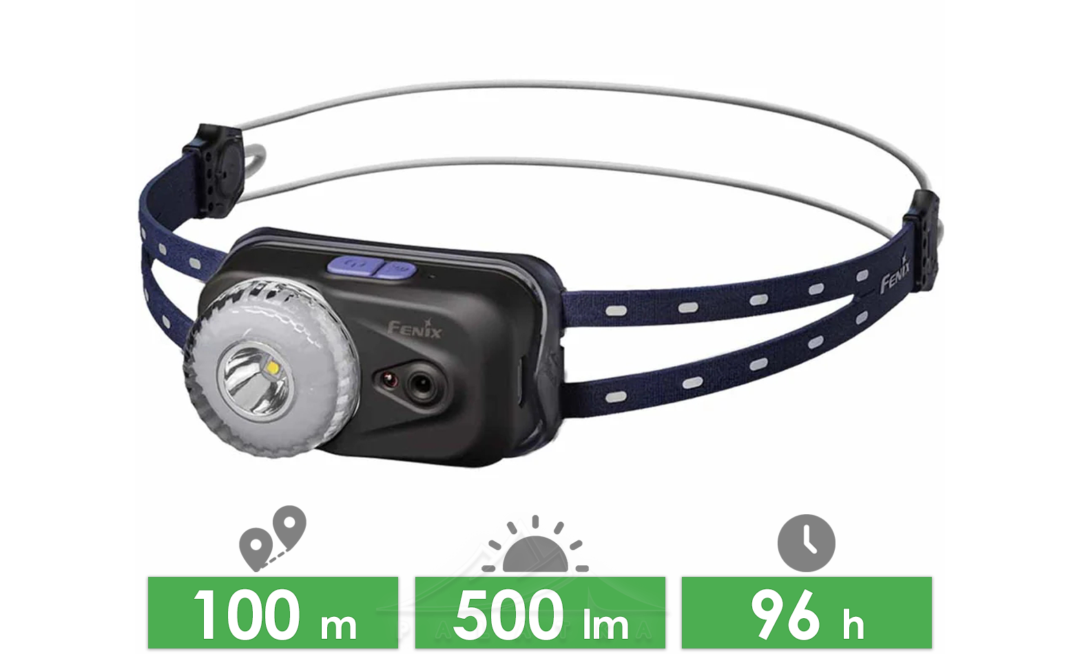 - Еко: 5 лм; час роботи — 96 год 50 хв; дальність 10 м