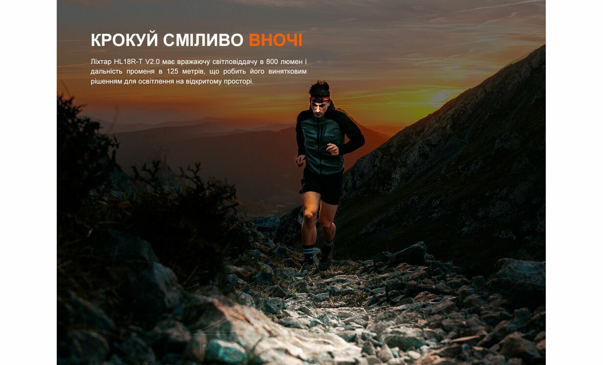 Fenix HL18R-T V2.0 — легкий та функціональний налобний ліхтар, створений для бігових тренувань, туристичних походів та активного відпочинку на відкритому повітрі.