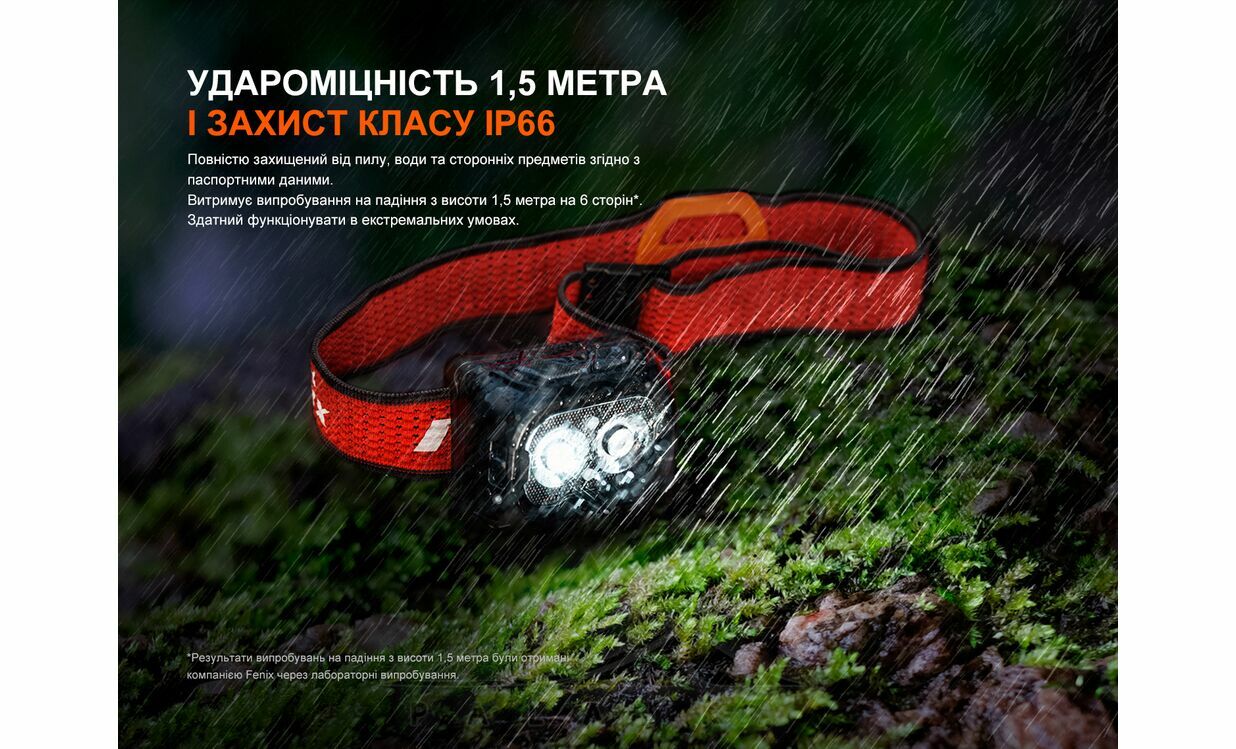 - Гібридне живлення: працює як від акумулятора Fenix ARB-LP1900 (1900 мА год) (в комплекті), так і від трьох батарейок AAA (не входять у комплект).