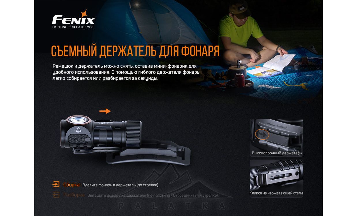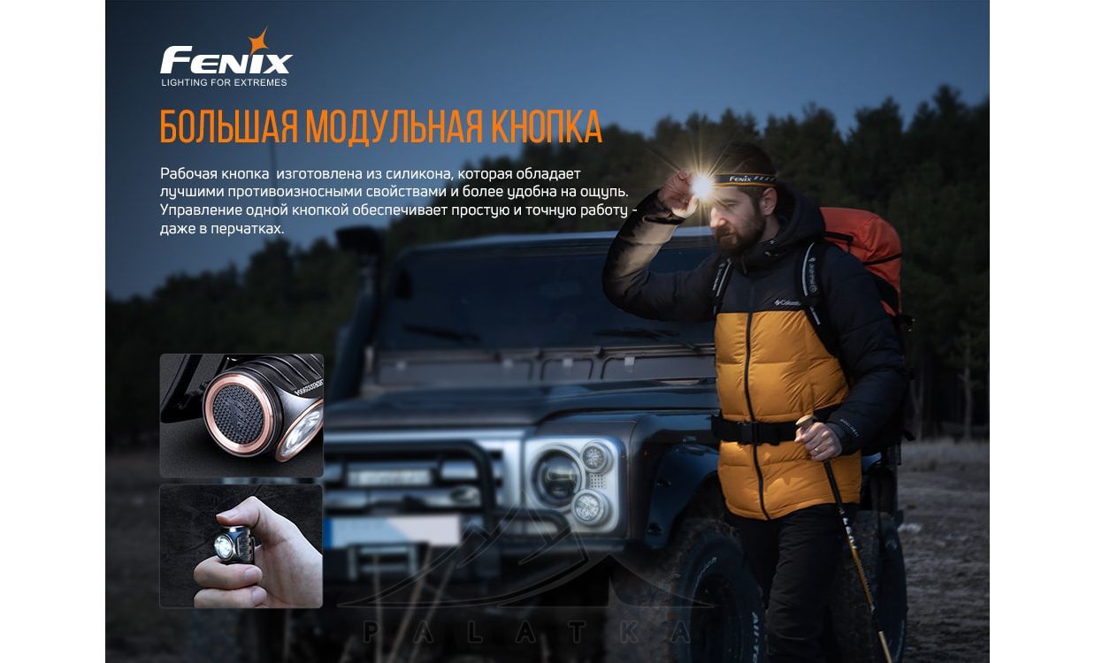 - Легка вага (78 г) і компактні розміри 6,4x3,6x3,2 см — комфортний формат для налобного використання та EDC.