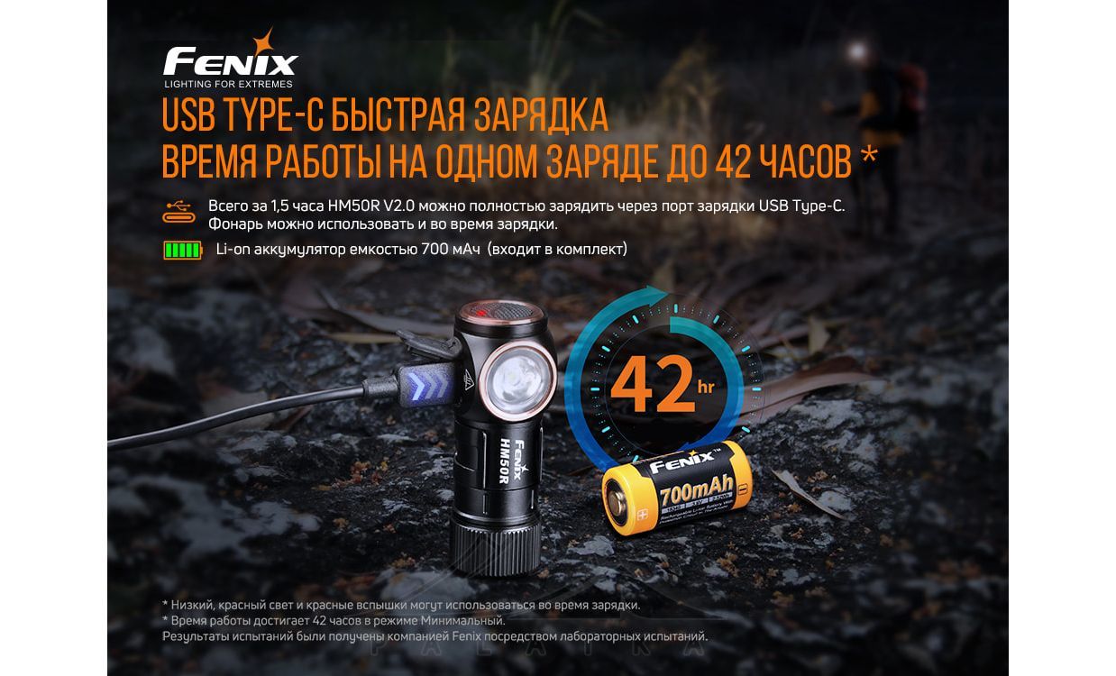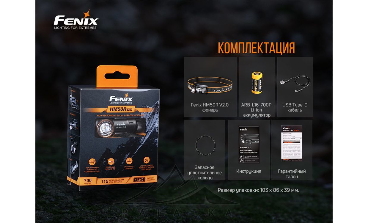 - У комплекті акумулятор Fenix ARB-L16-700P (700 mAh), кабель USB Type-C, ліхтар та ущільнювальне кільце — можна користуватися відразу після покупки.