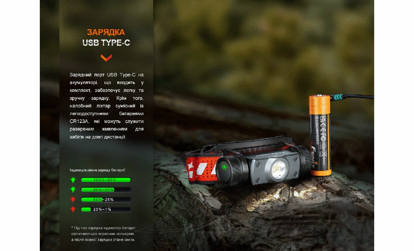 - У комплекті акумулятор Fenix ARB-L18-3400U V2.0 (3400 mAh), кабель USB Type-C, ліхтар та ущільнювальне кільце — можна стартувати без додаткових покупок.