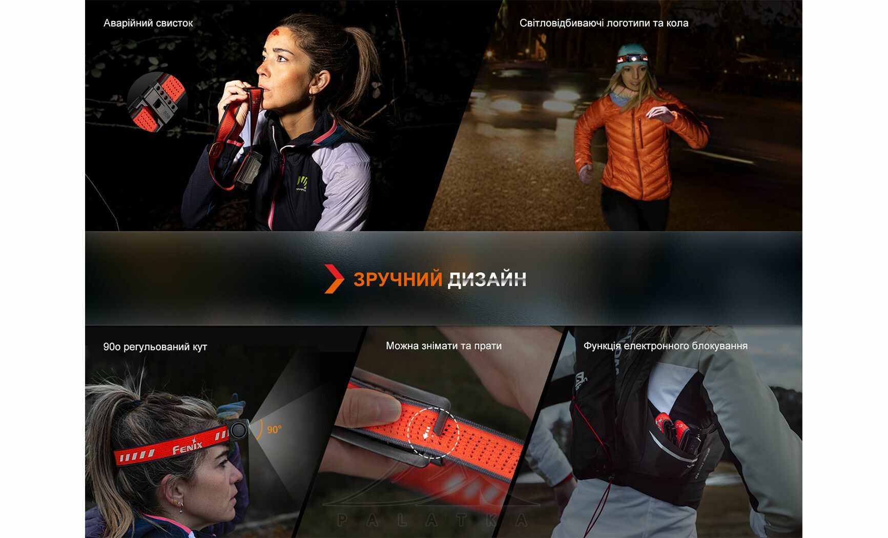 - Світловідбиваючі елементи — підвищують помітність користувача в темряві при освітленні фарами/ліхтарями, що особливо корисно під час бігу чи руху вздовж дороги.