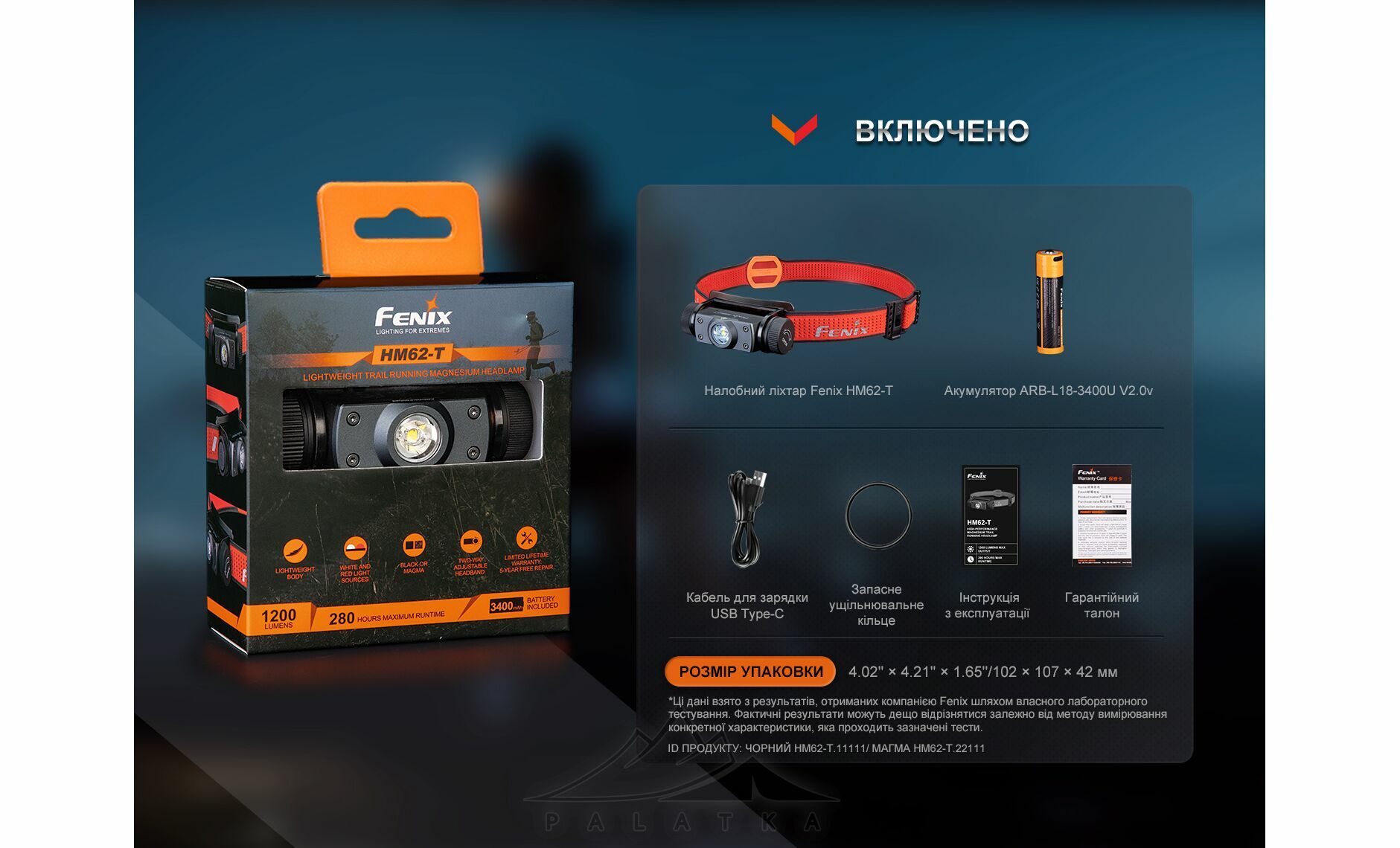 Налобний ліхтар Fenix HM62-T V2.0 (Magma) — акумуляторна модель для бігу, походів і повсякденного використання, коли потрібен хороший баланс між потужністю, вагою та надійністю. Підійде тим, кому важливі біле світло для основної роботи, червоне світло для делікатного підсвічування в темряві та надійний захист корпусу для активного використання. Ліхтар має порт USB Type-C для заряджання, індикацію рівня заряду та постачається з акумулятором у комплекті.