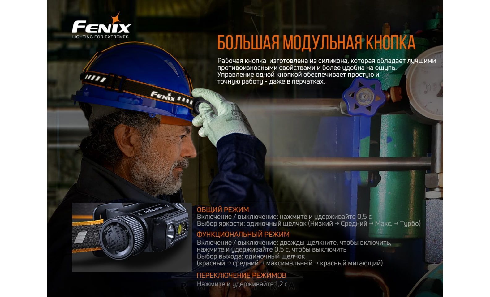 Режими роботи налобного ліхтаря Fenix HM70R