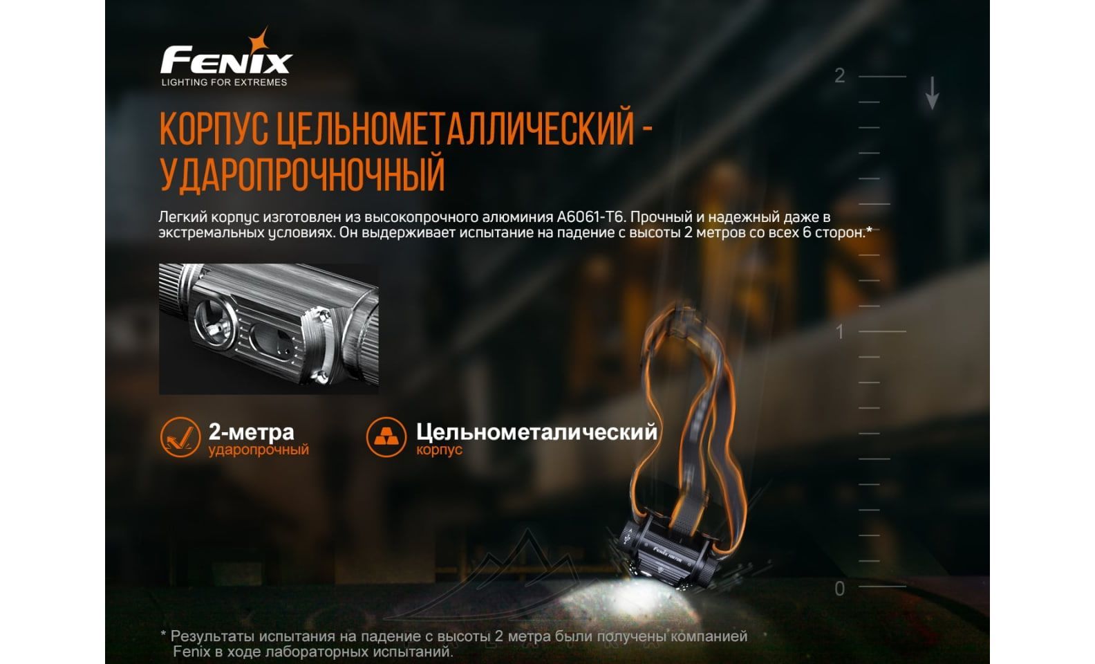 - Високий рівень захисту від потрапляння води та пилу (IP-68) дає можливість використовувати ліхтар під час занять екстремальними видами спорту, у негоду, а також на глибині до 2 метрів під водою (протягом 4 годин).