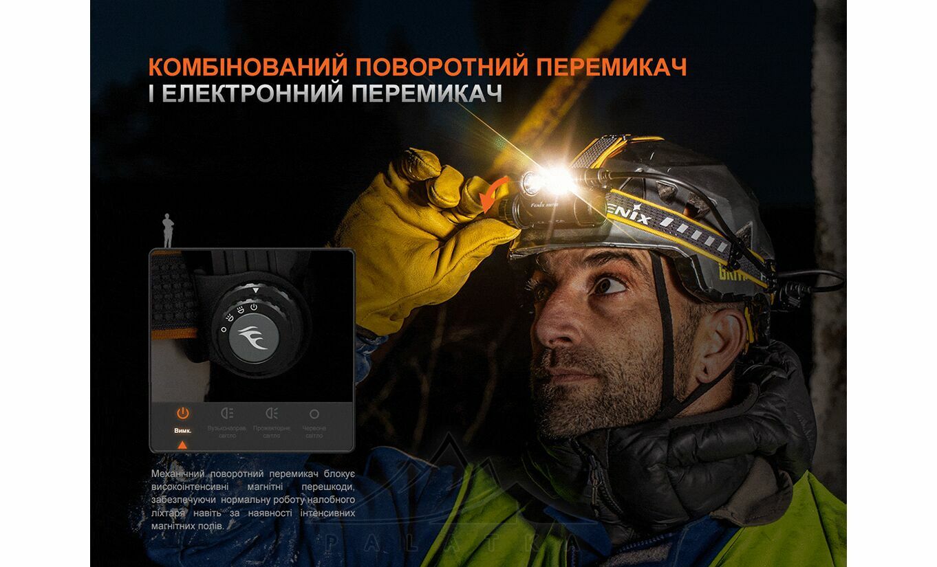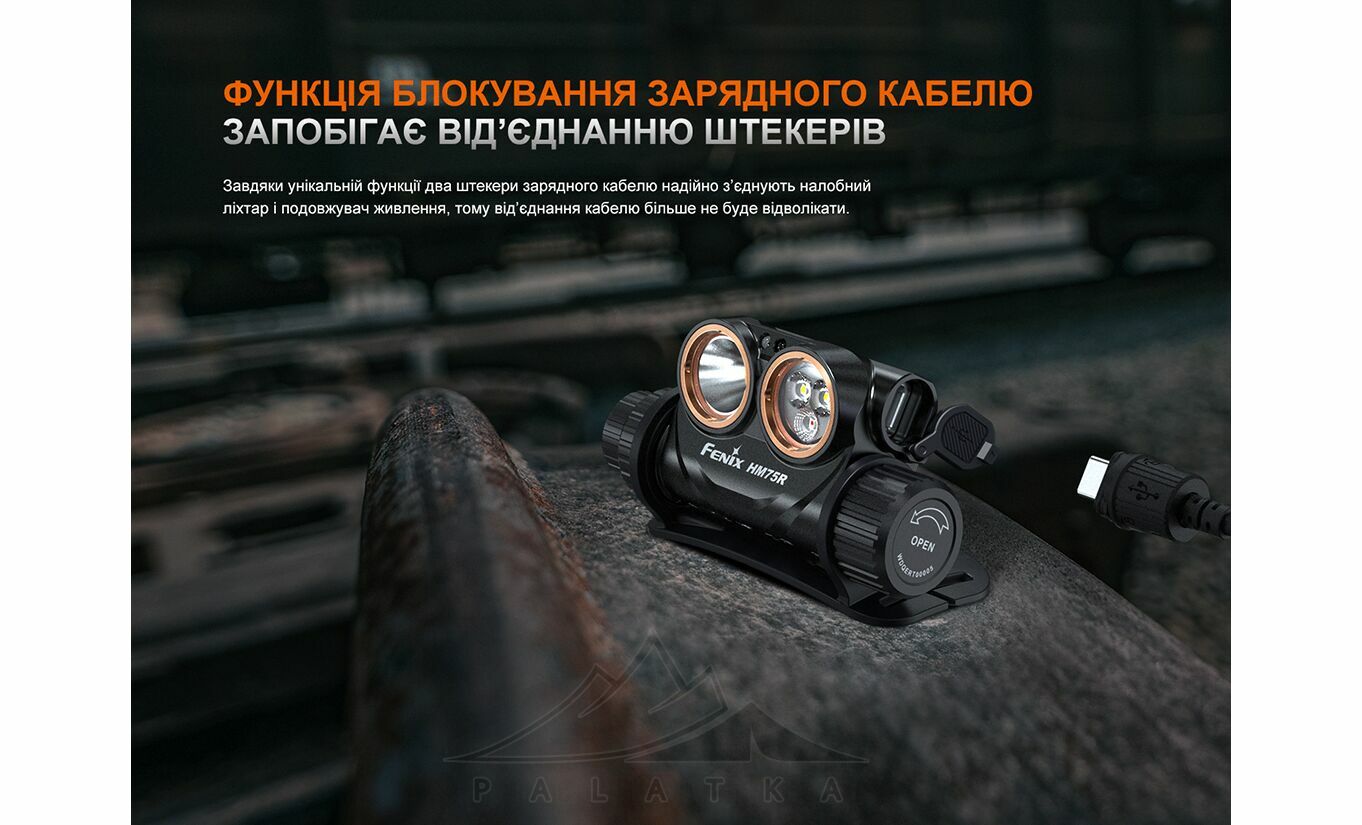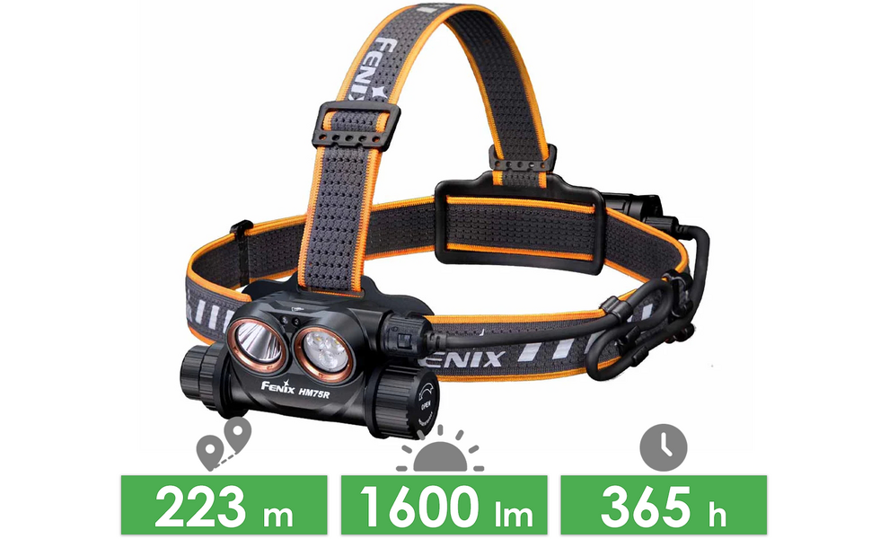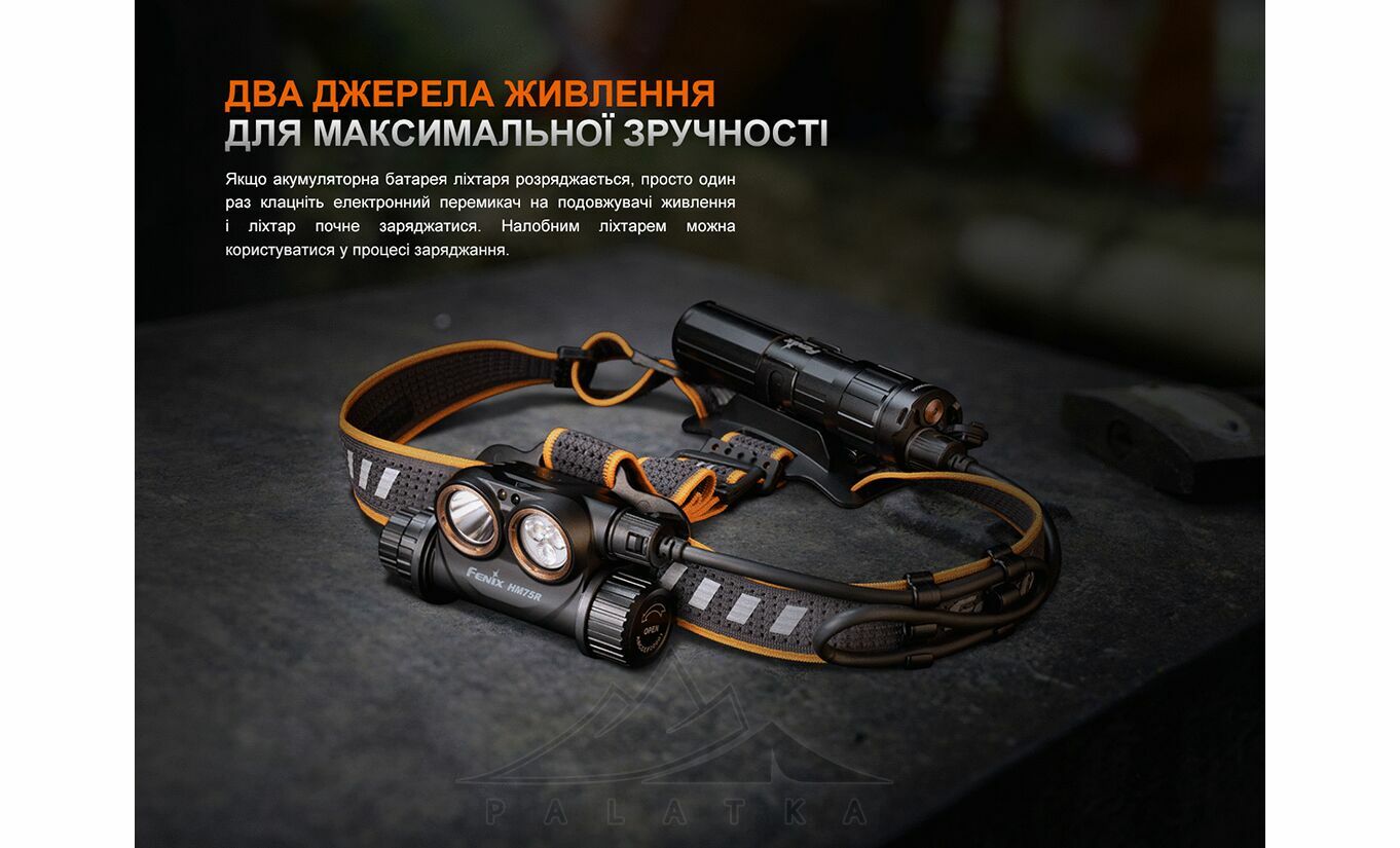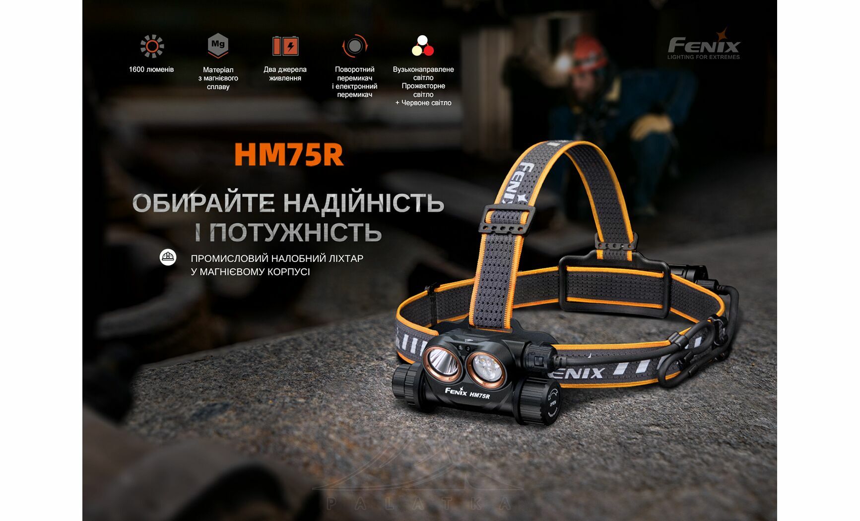 Налобний ліхтар Fenix HM75R — потужна акумуляторна модель для походів, роботи, сервісних задач і використання в складних умовах. Підійде тим, кому потрібен функціональний налобник з ближнім і дальнім білим світлом, червоним світлом, функцією павербанк і тривалою автономністю. Ліхтар має порт USB Type-C для заряджання, індикацію рівня заряду та постачається з акумулятором у комплекті.