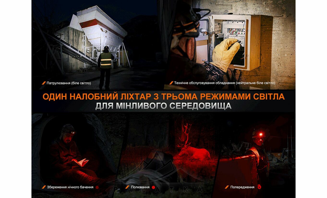 - 3 режими червоного світла + червоний мерехтливий — зручно для роботи в темряві, табору та сигнального сценарію.