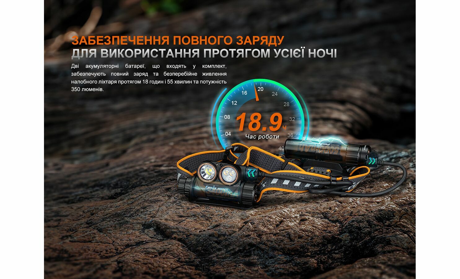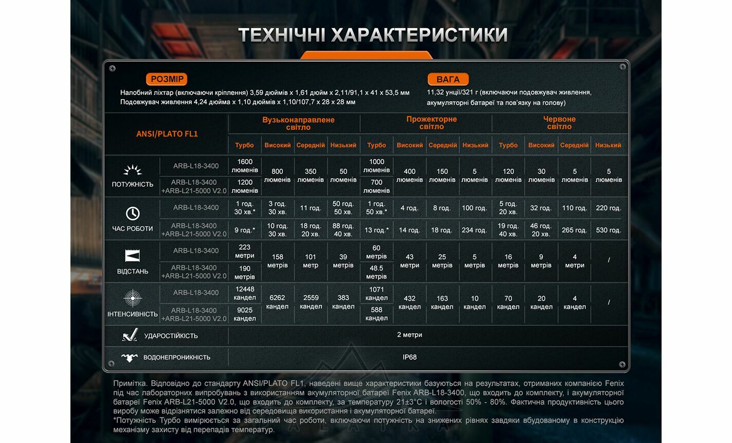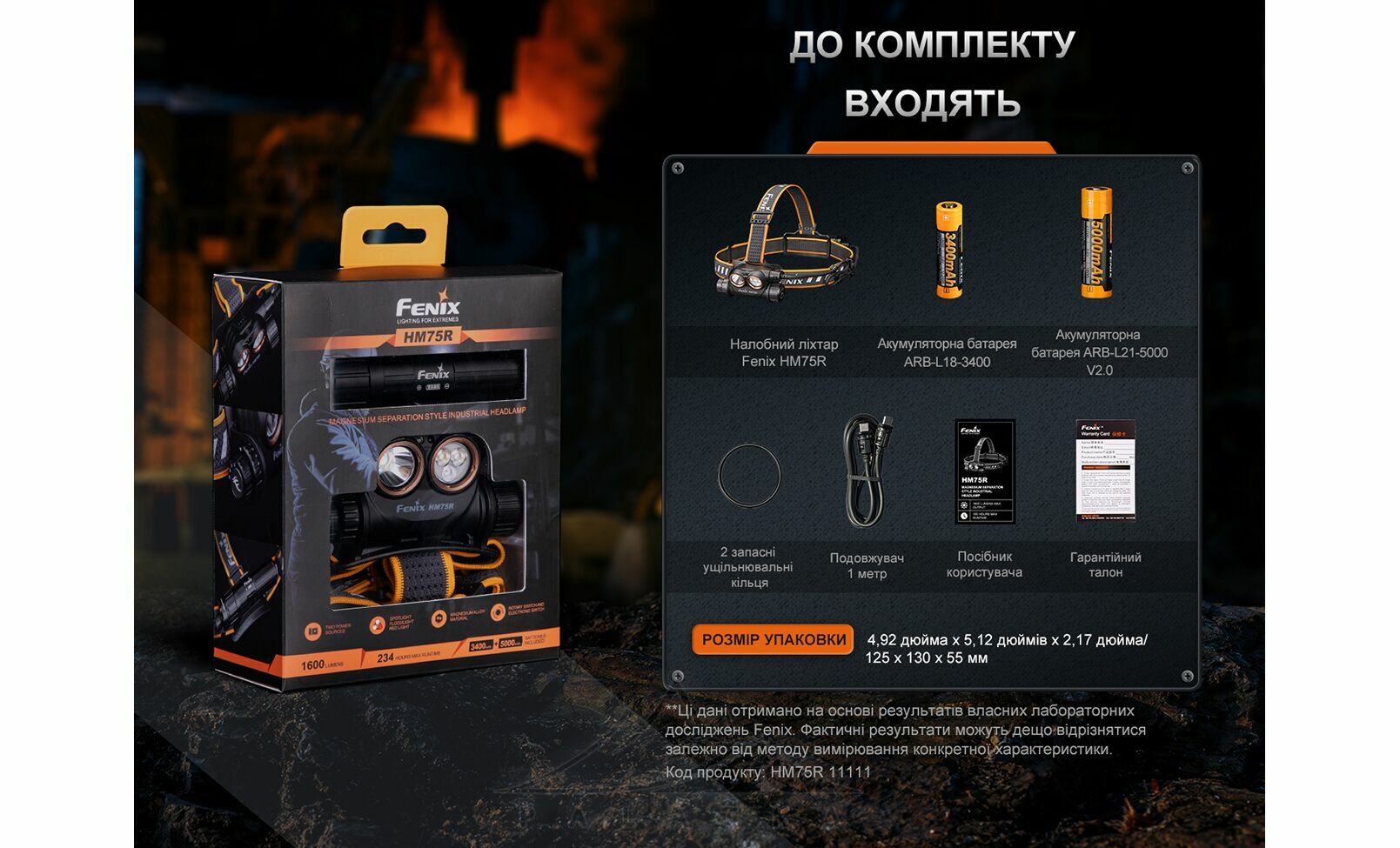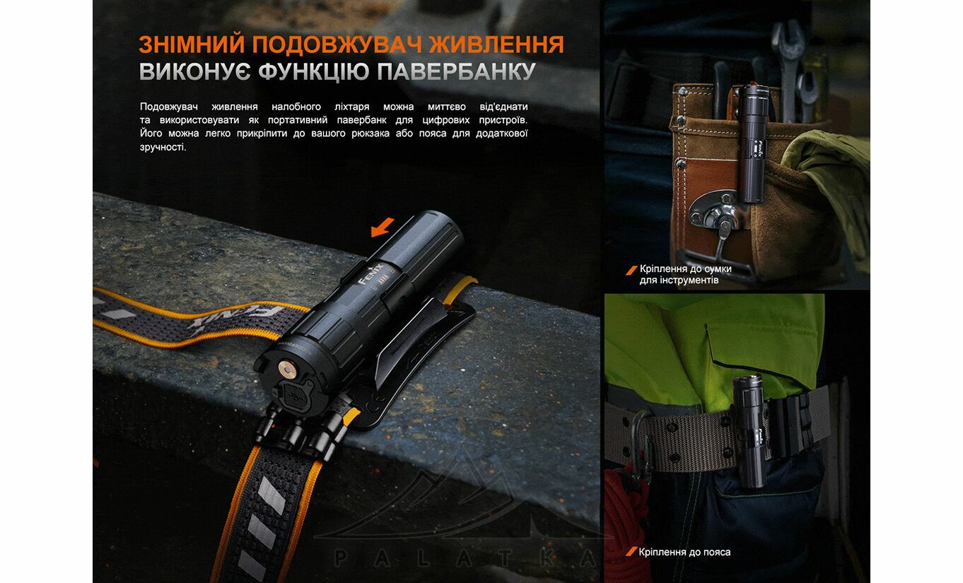 - У комплекті акумулятор Fenix ARB-L18-3400 (3400 mAh), подовжувач і 2 ущільнювальні кільця — можна стартувати без окремої покупки акумулятора.