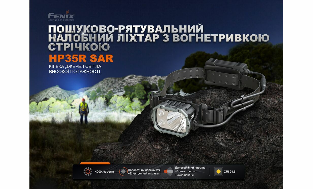 Fenix HP35R SAR — професійний налобний ліхтар для пошуково-рятувальних робіт, патрулювання, спелеології та пожежогасіння.