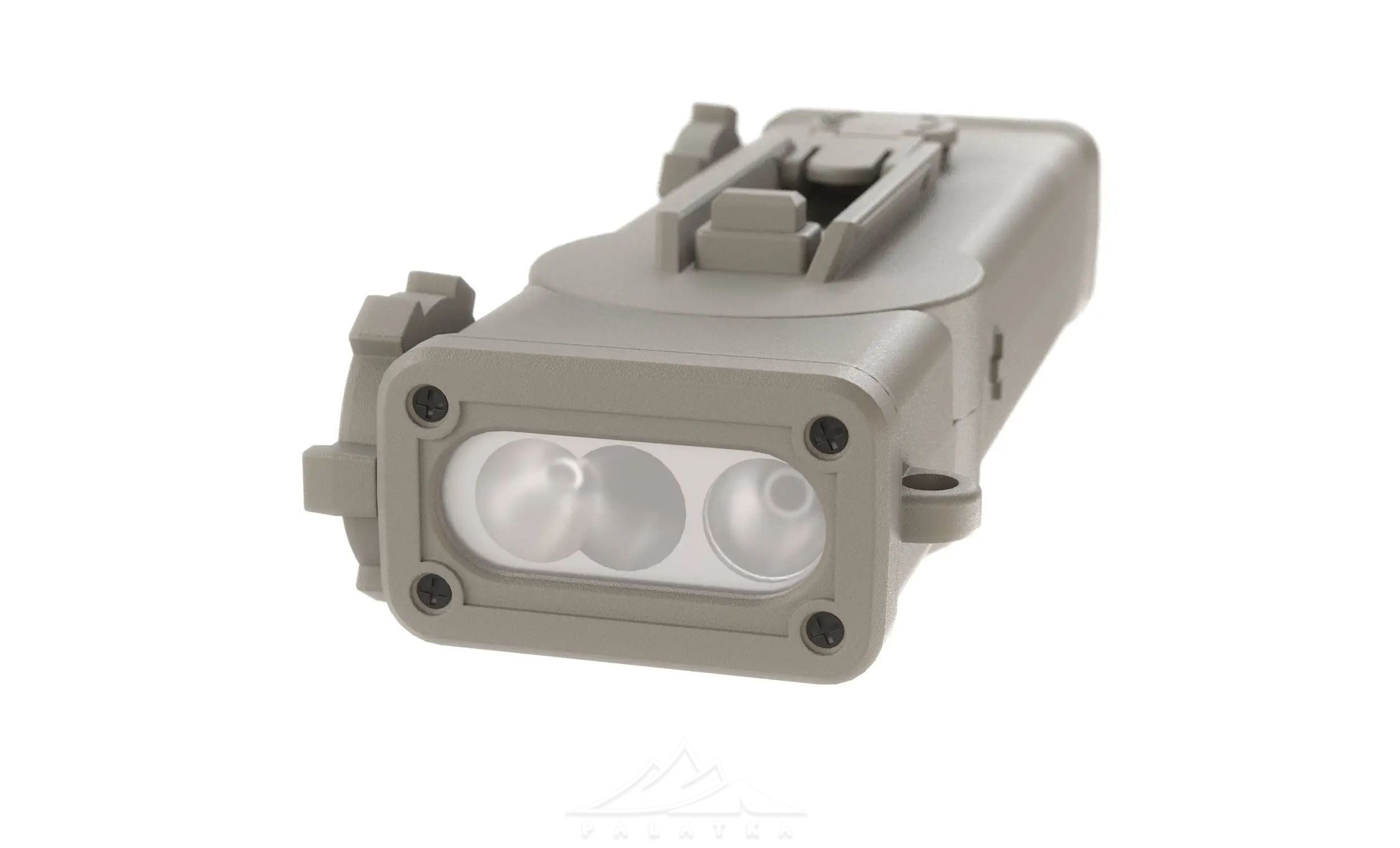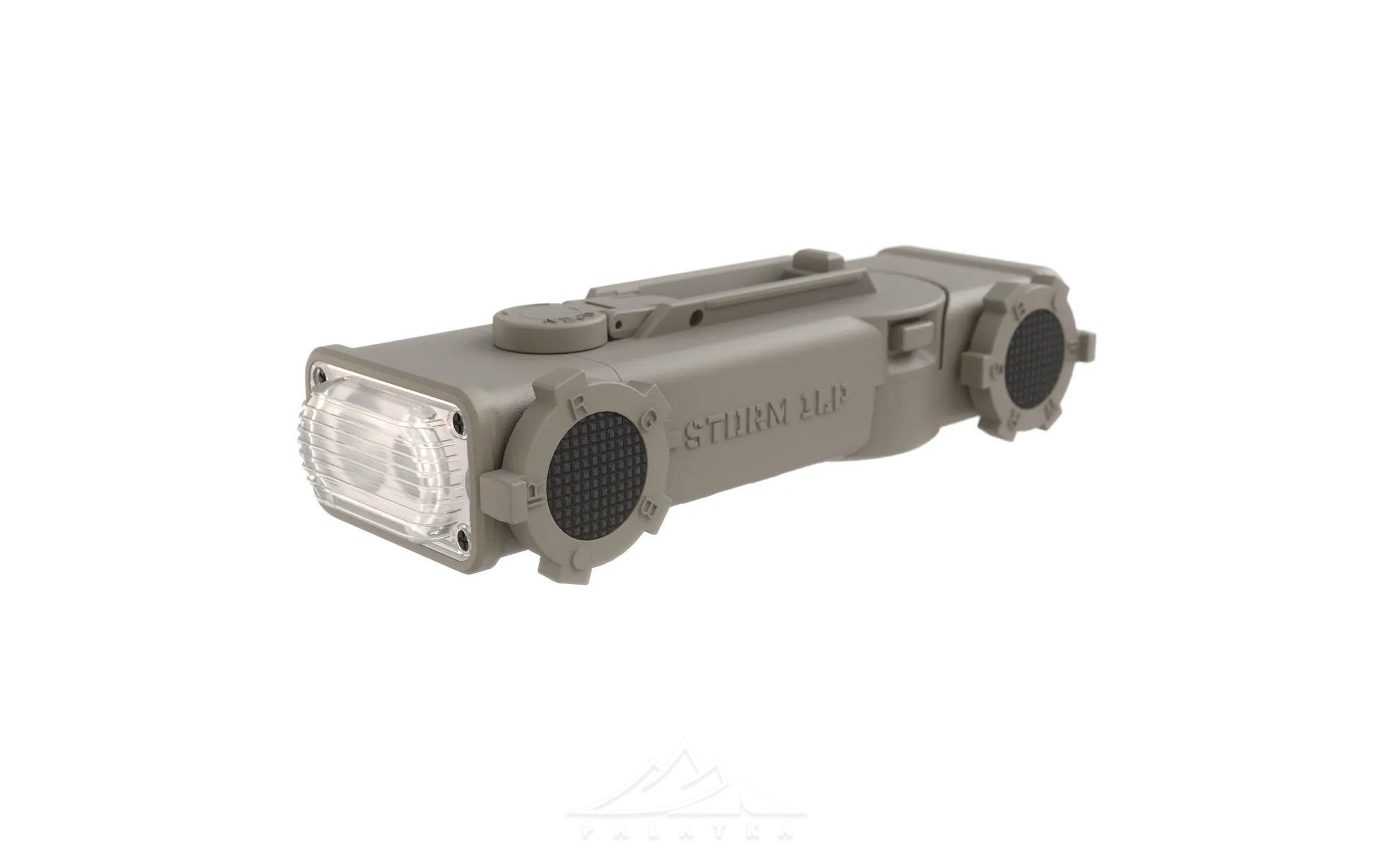 Mactronic Storm 1LP — багатофункціональний налобний ліхтар зі світлодіодами різних кольорів, інфрачервоним випромінювачем та регульованим кутом нахилу. Призначений для фіксаціїї на тактичних шоломах з системою кріплення на бічну рейку. Універсальна модель для тактичних завдань, та в екстремальних умовах.