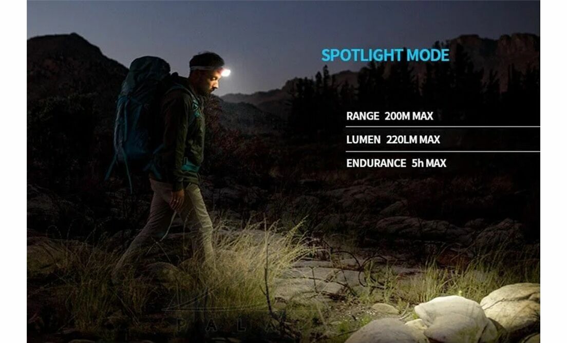 - Вага 101 г і розміри 7,6x5,2x4,3 см — компактний формат для налобного ліхтаря.