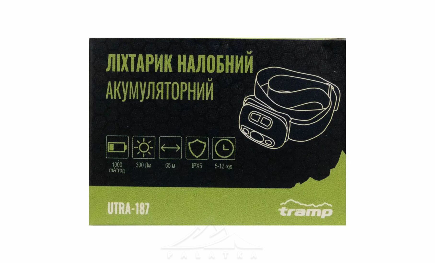 Tramp UTRA-187 — універсальний компактний налобний ліхтар з міцного пластику, що має функцію перезарядки. Може використовуватись під час походів, риболовлі, та у повсякденному житті.