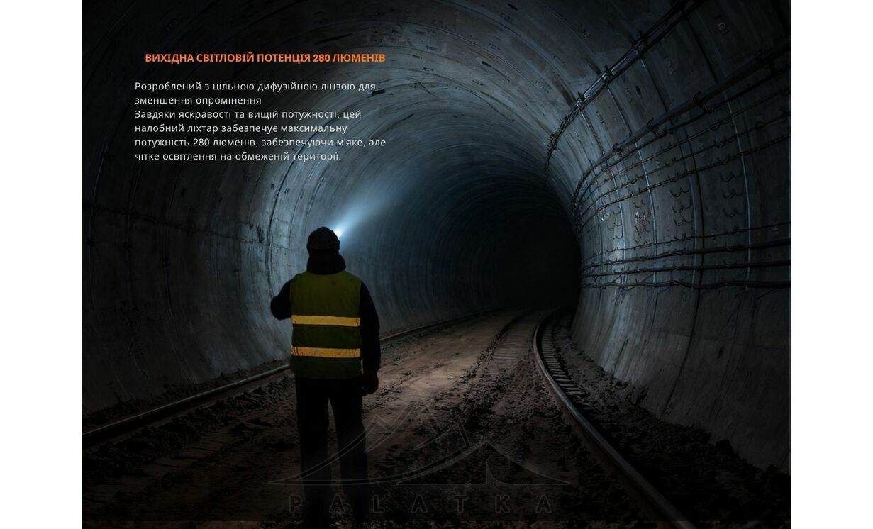- Цілісна розсіювальна лінза формує широке світлове поле без засліплення, навіть при яскравості 280 лм.