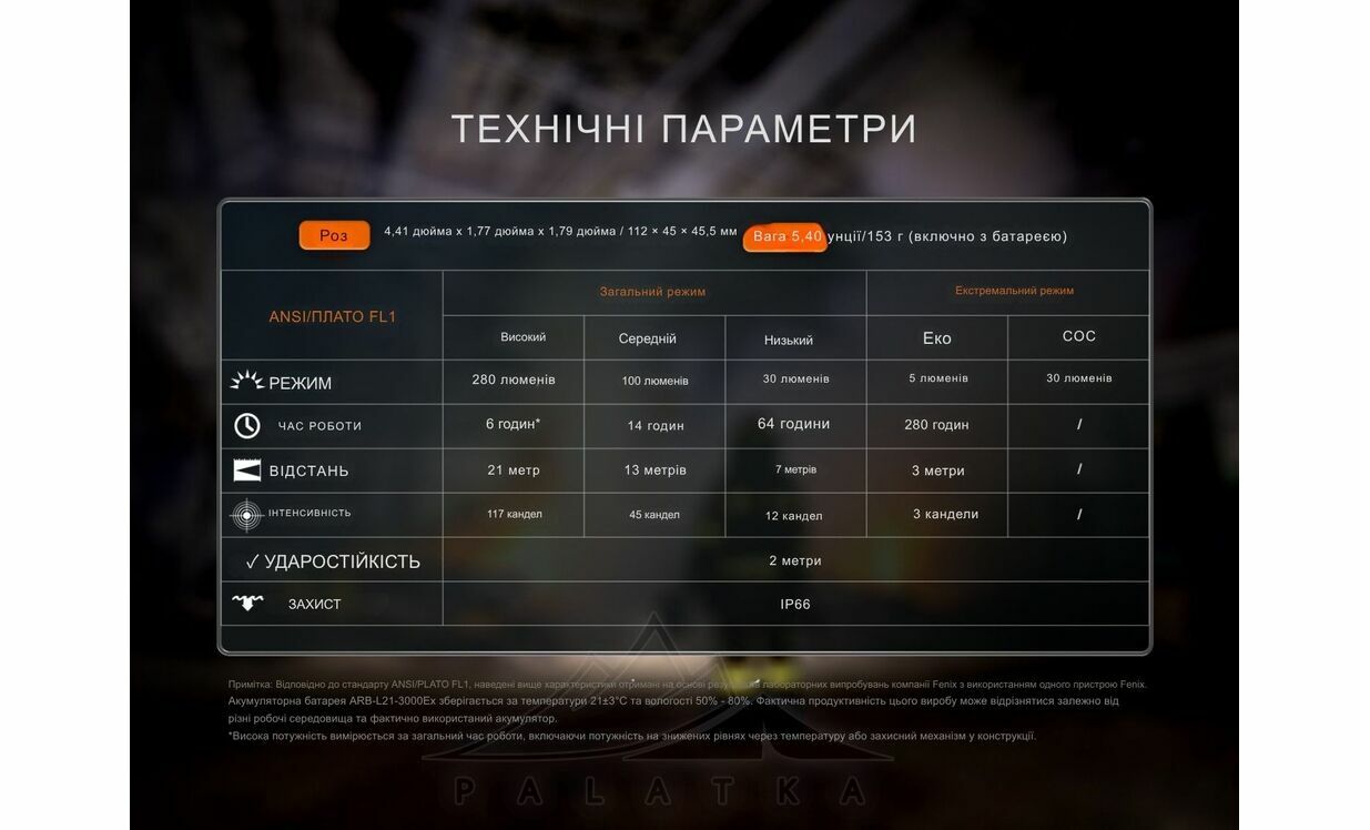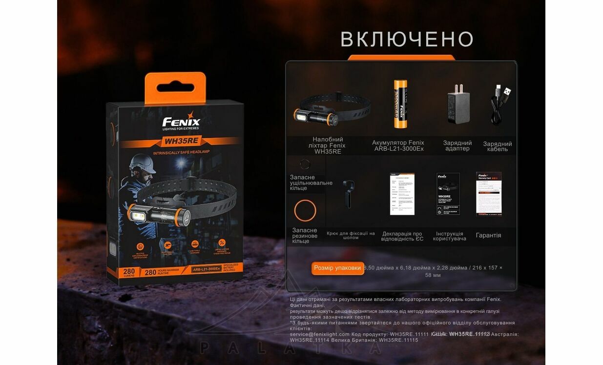 - Живлення від змінного вибухозахищеного акумулятора Fenix ARB-L21-3000Ex (21700) ємністю 3000 mAh (в комплекті).