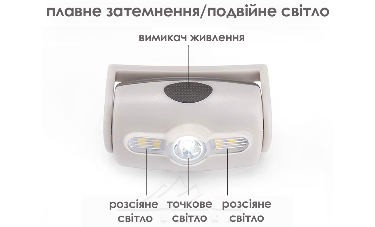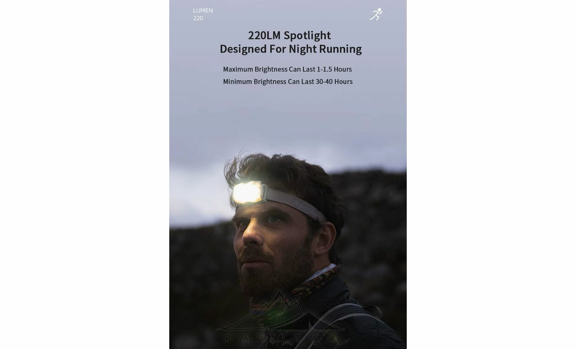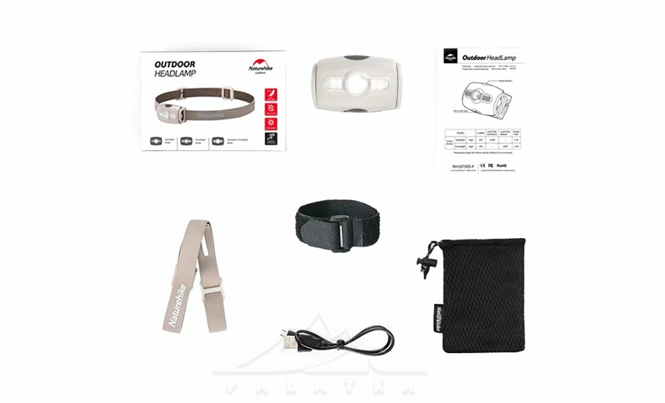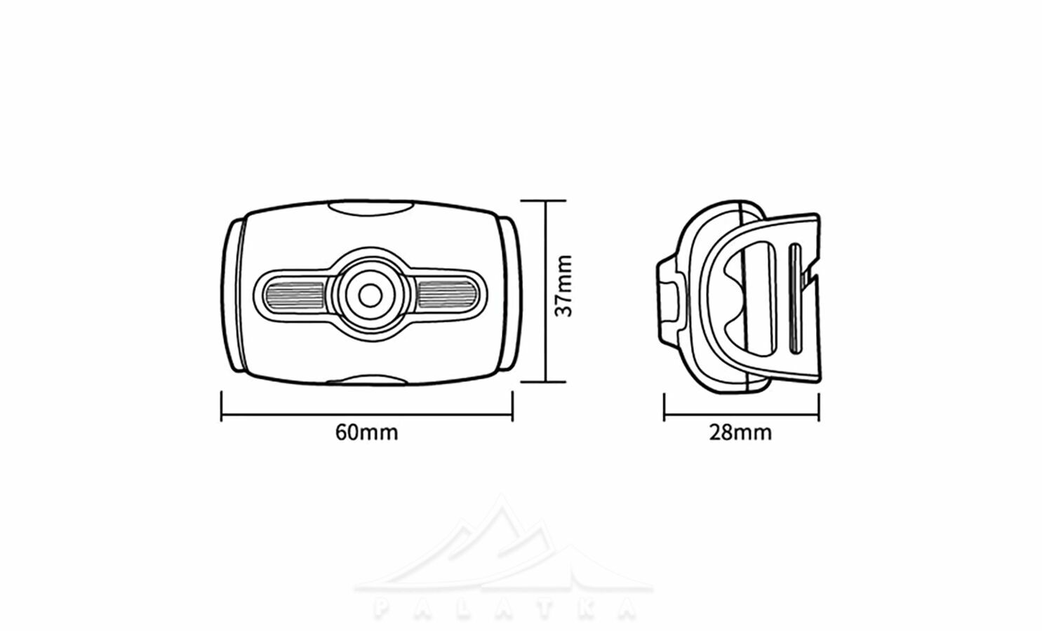 - Легка вага 48 г і компактні розміри 6x3,7x2,8 см — комфортний формат для налобного ліхтаря.
