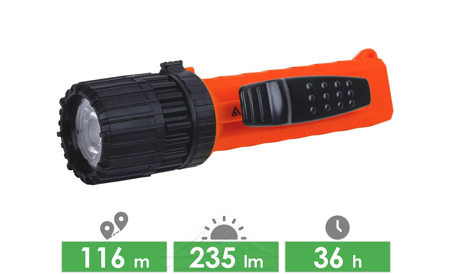 - Протиковзка ергономічна конструкція корпусу та текстурована ручка забезпечують надійне утримання ліхтаря.