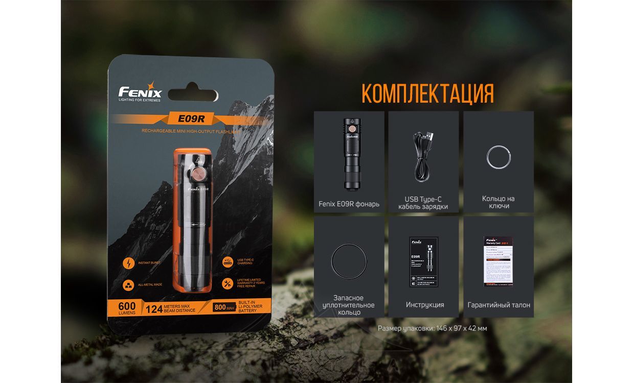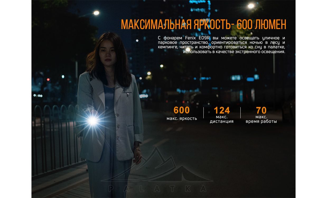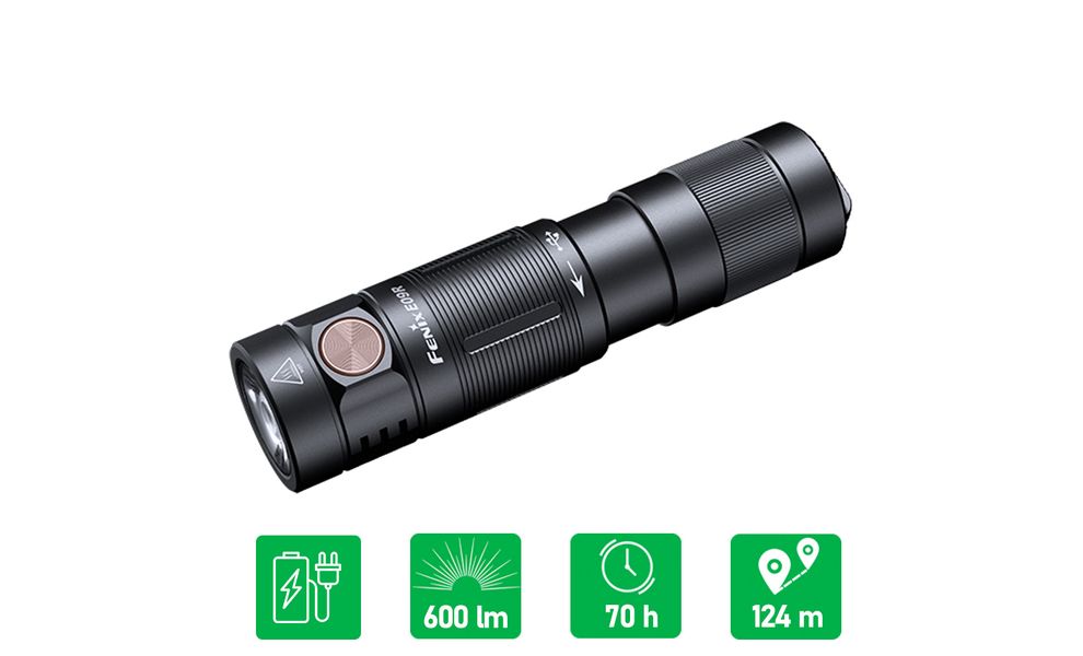 Ліхтарик Fenix E09R — це маленький ліхтарик-брелок на кільці, який легко кріпиться на ключах або рюкзаку. Він має 5 режимів яскравості білого світла.