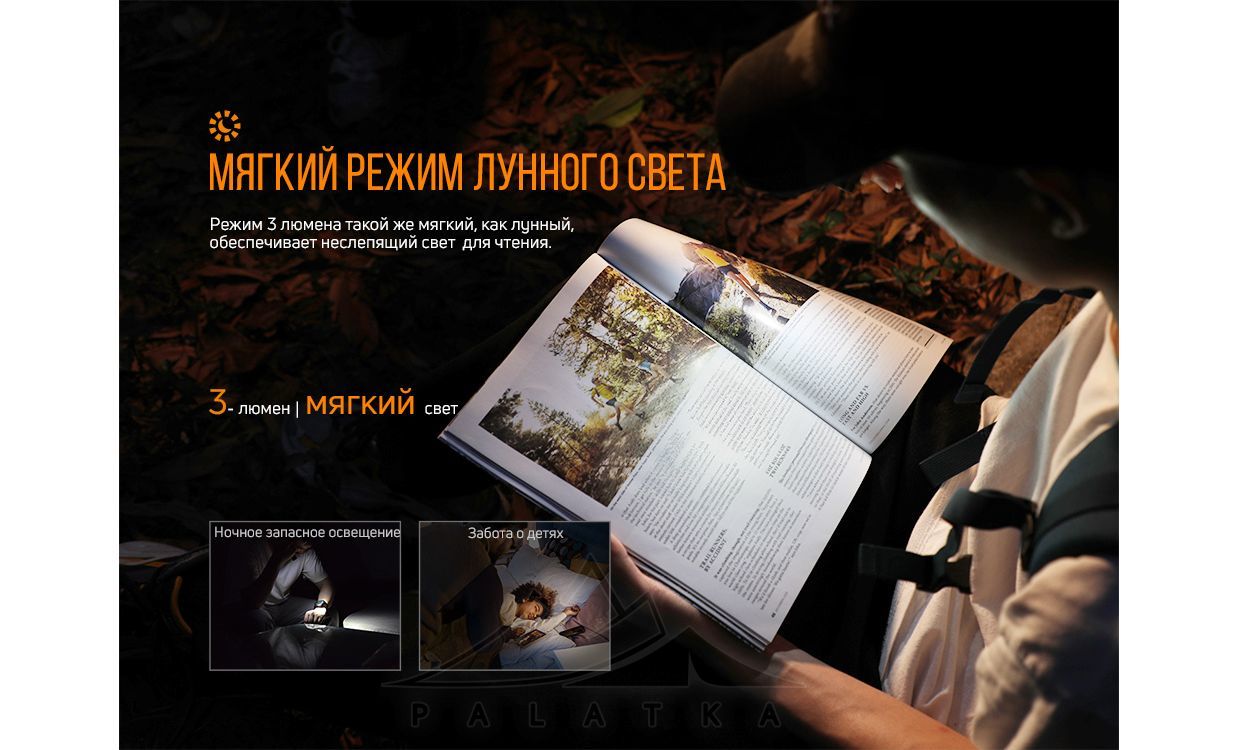 - MOONLIGHT: яскравість — 3 люмени, час роботи — 70 годин, дальність — 9 м.
