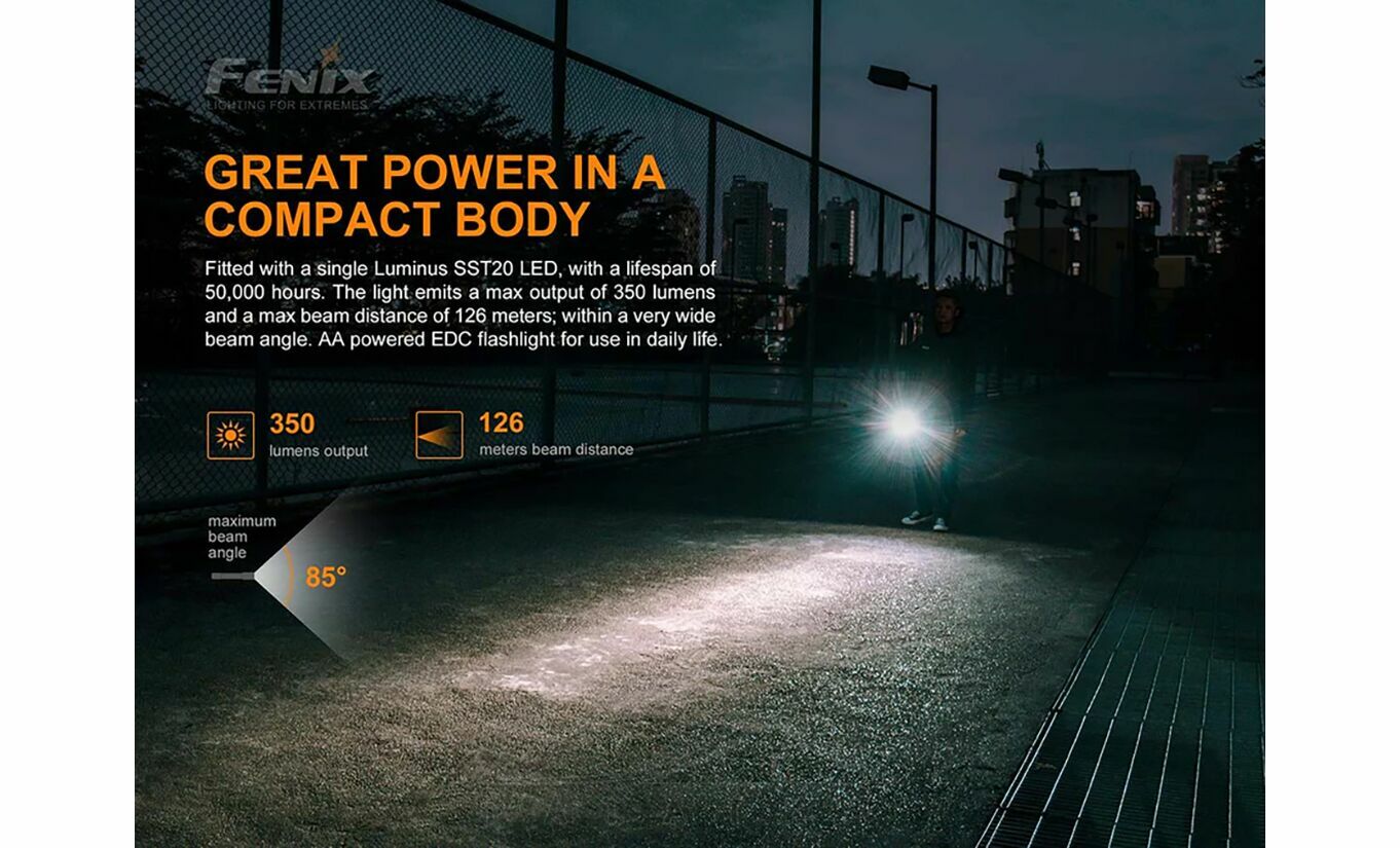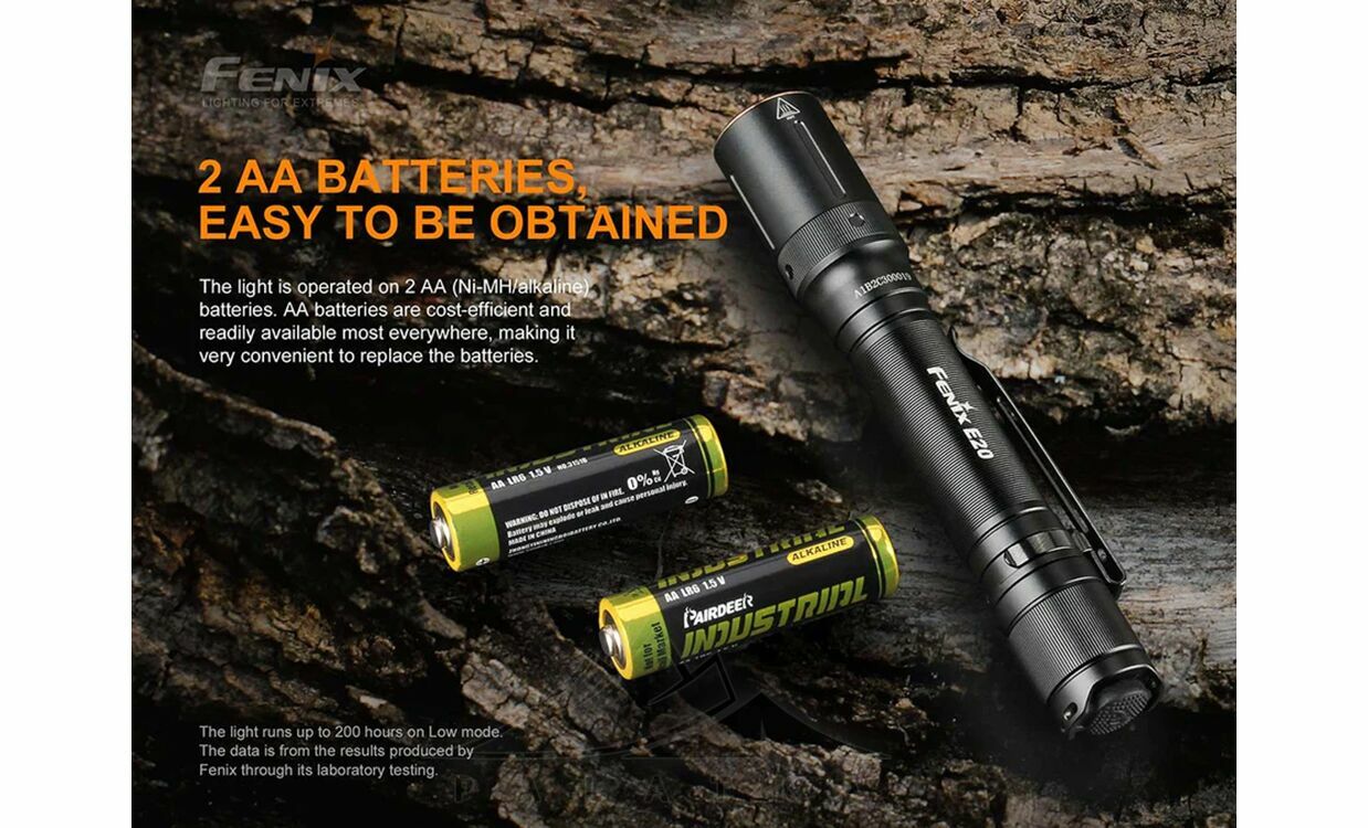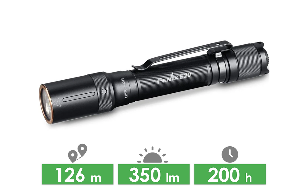 Ліхтар ручний Fenix E20 V2.0 — компактна універсальна модель для побутових задач, авто, майстерні та щоденного носіння, коли потрібні надійний корпус, хороша дальність світла і просте живлення від AA-батарейок. Підійде тим, хто хоче легкий ручний ліхтар без заряджання, але з хорошим запасом автономності та захистом для використання в різних умовах. Модель має 4 режими білого світла, кліпсу, металевий корпус і захист IP68.
