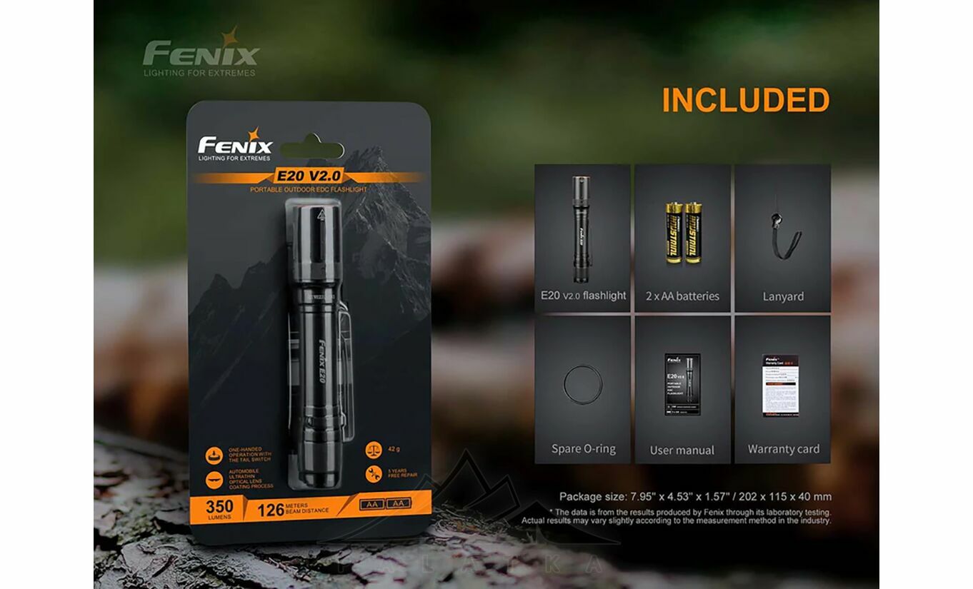 - У комплекті: ліхтар, 2 батарейки AA, темляк, ущільнювальне кільце — базова комплектація для старту користування.