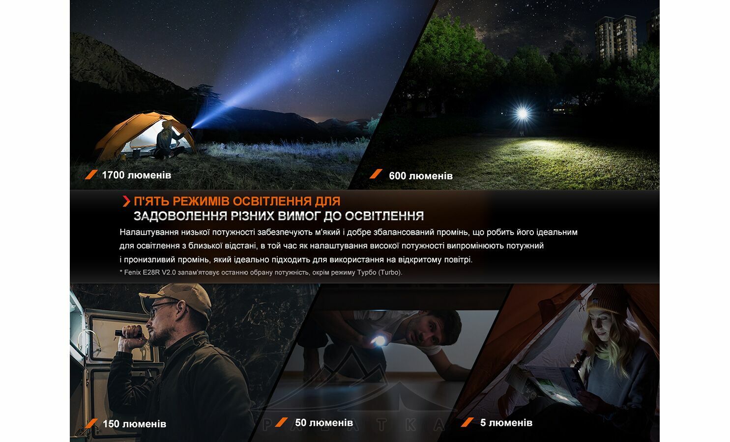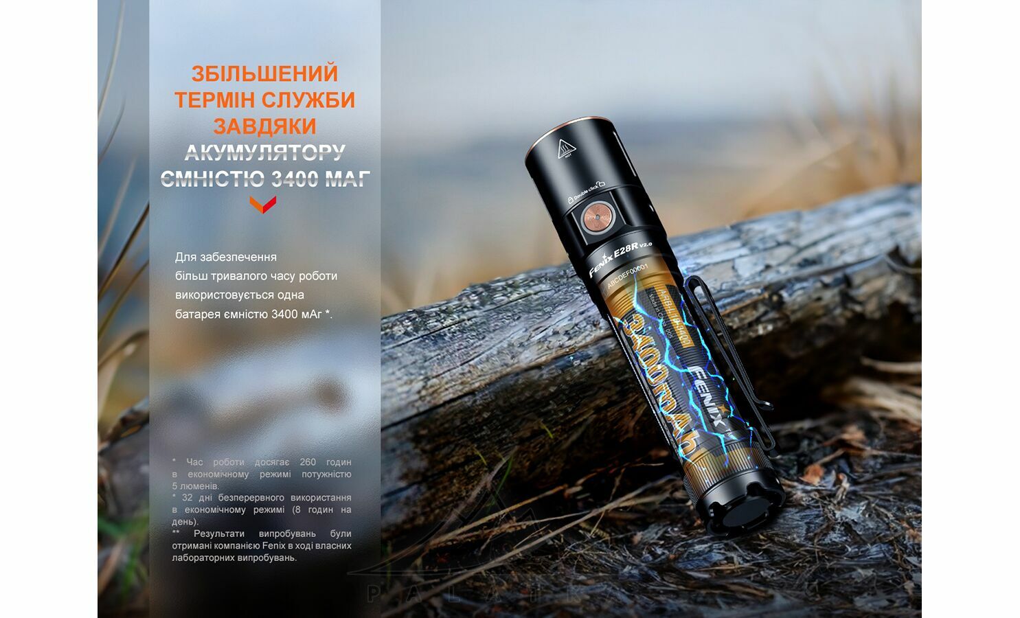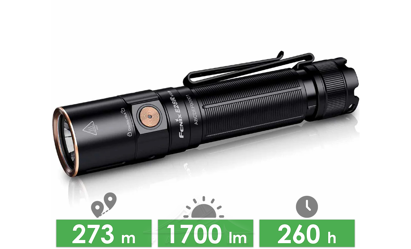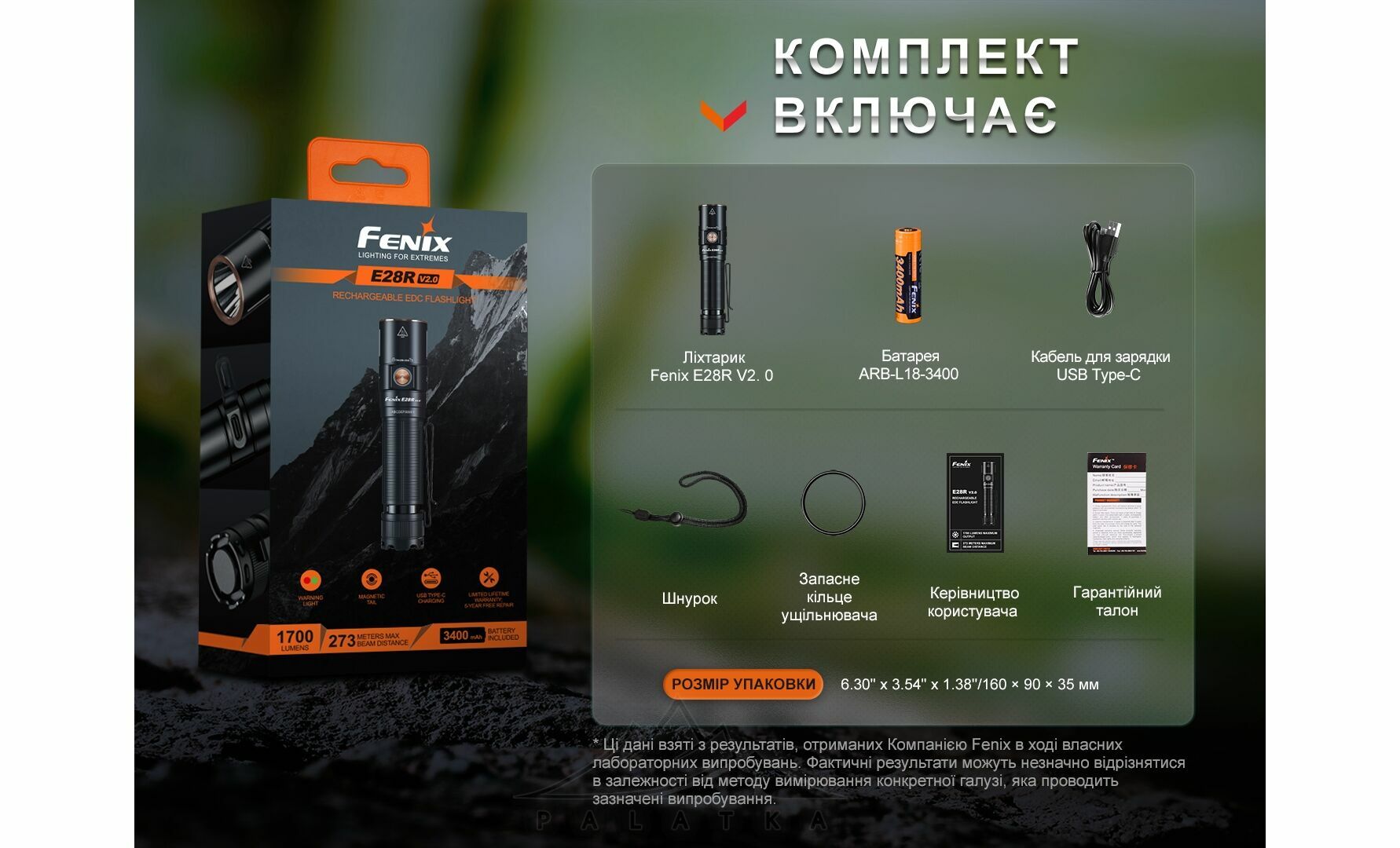 Fenix E28R V2.0 — дуже вдалий варіант, якщо потрібен компактний EDC-ліхтар із запасом потужності та реально зручними функціями на щодень: магнітна основа, кліпса, USB-C заряджання, індикатор заряду і режим Pulse для швидкого пошуку ліхтаря в темряві.