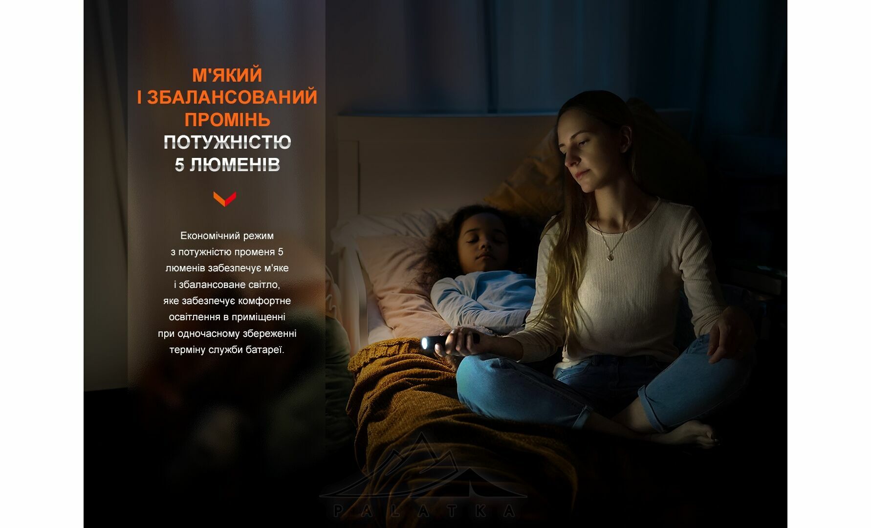 - 5 режимів білого світла + строб + Pulse — можна підібрати яскравість під задачу, а сигнальні режими використовувати для привернення уваги або пошуку ліхтаря.