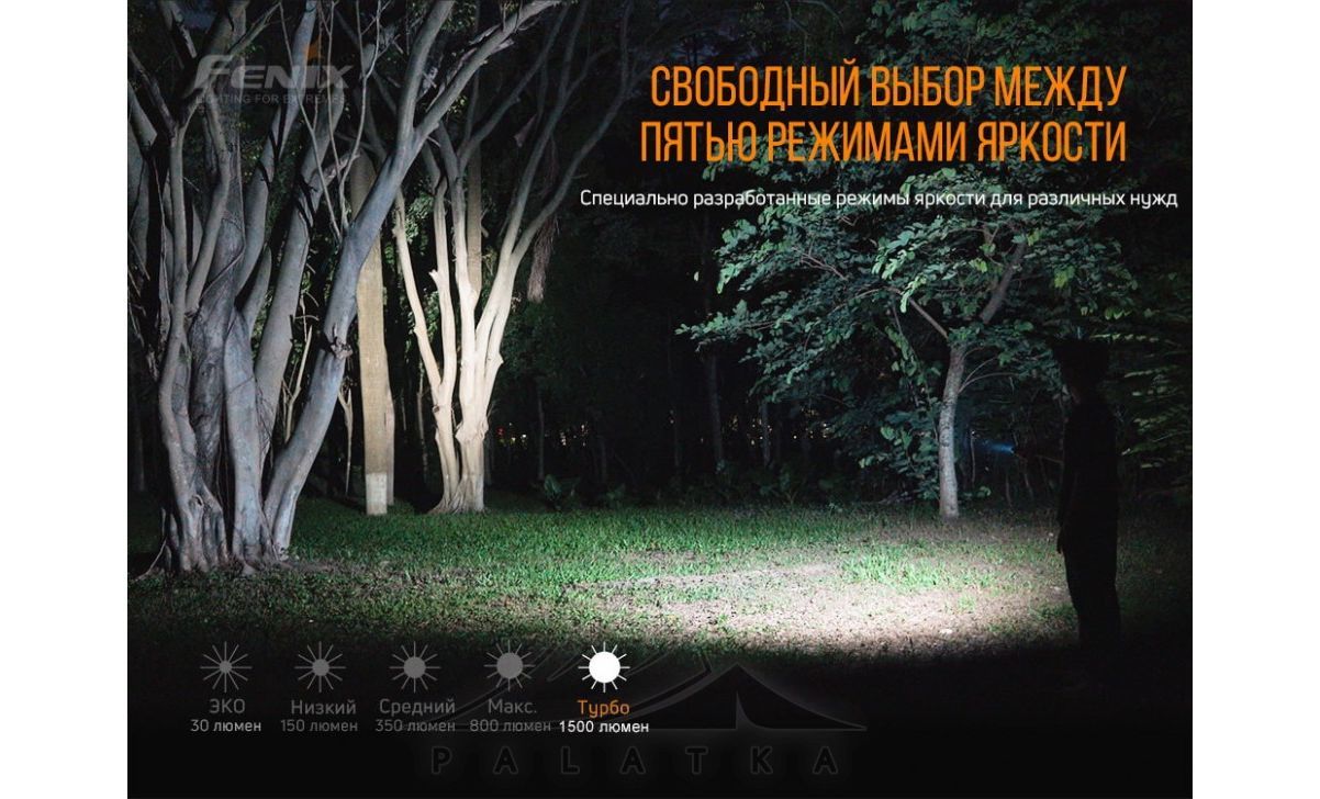 - Turbo: яcкравість - 1500 lm, час роботи - 2 г 5 хв, дальність - 200 м