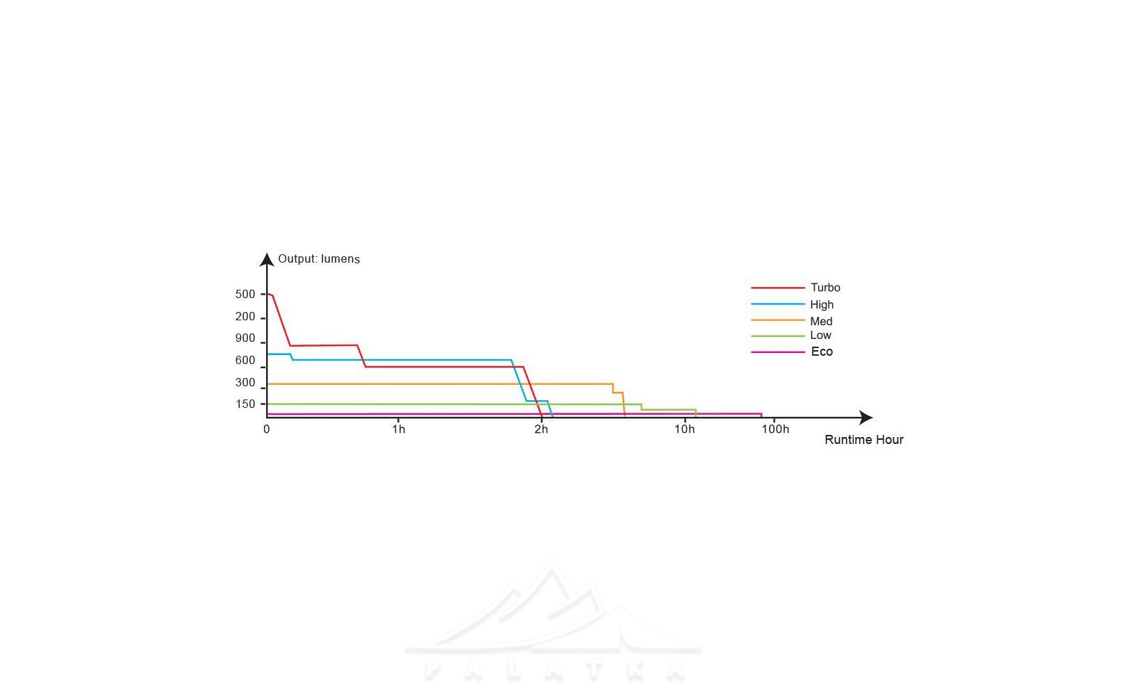 - Eco: яcкравість - 30 lm, час роботи - 73 г 35 хв, дальність - 28 м