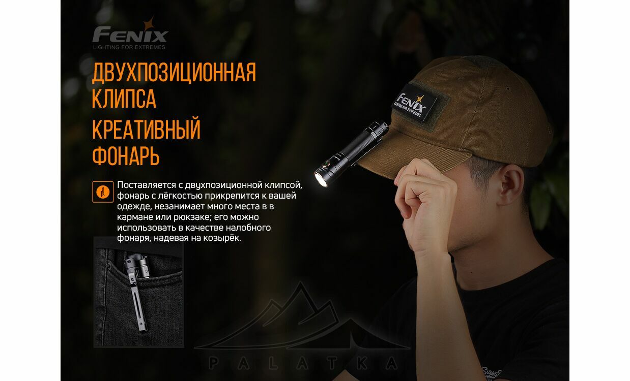 - Кліпса на корпусі дозволяє міцно закріпити ліхтар до рюкзака, ременя або одягу для швидкого доступу.