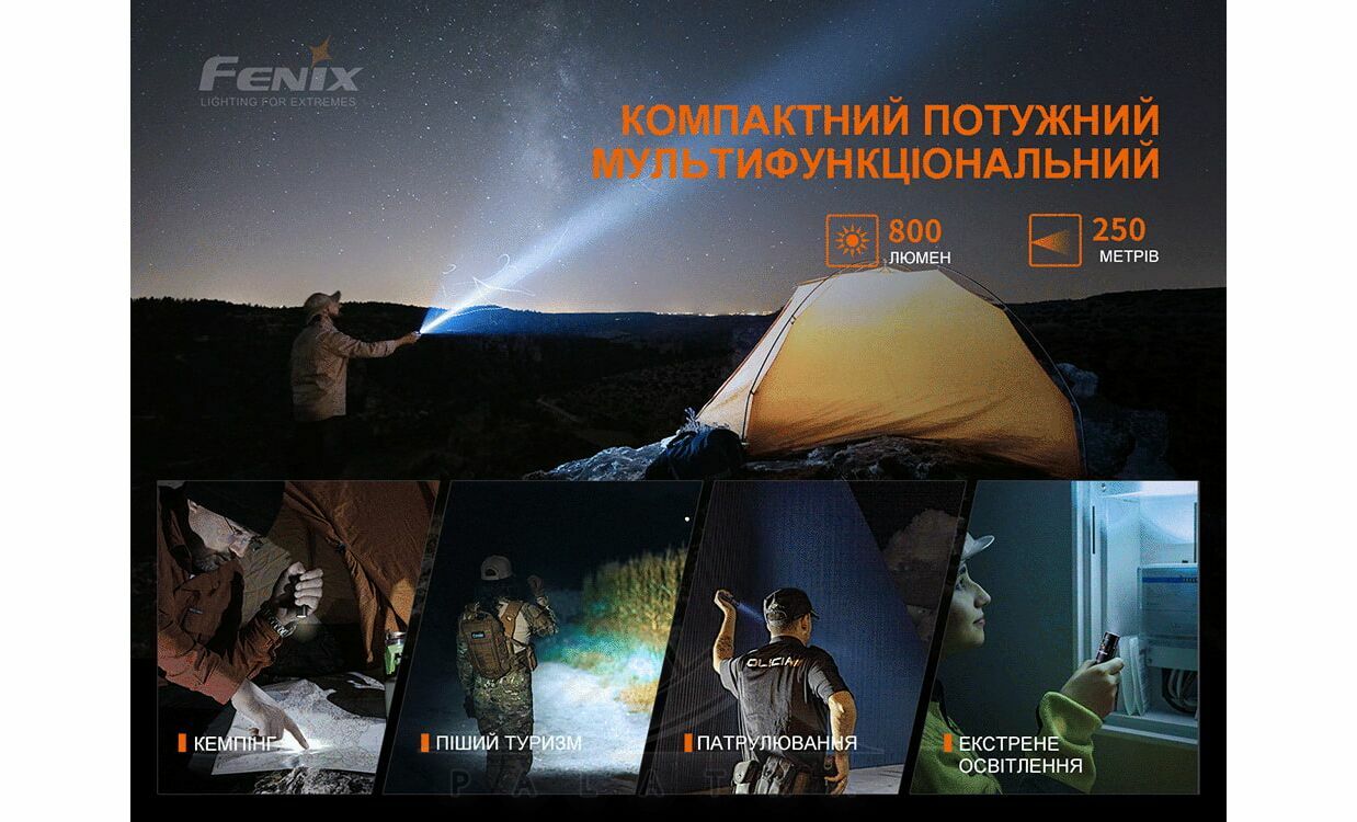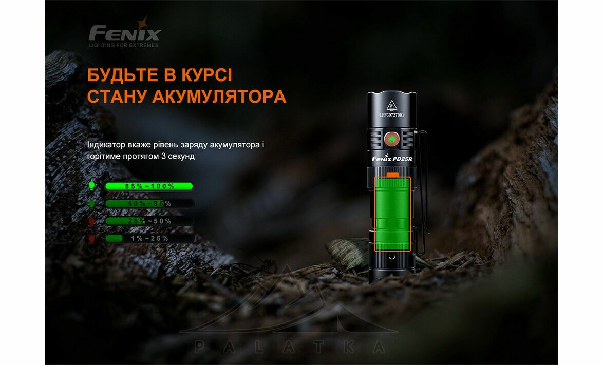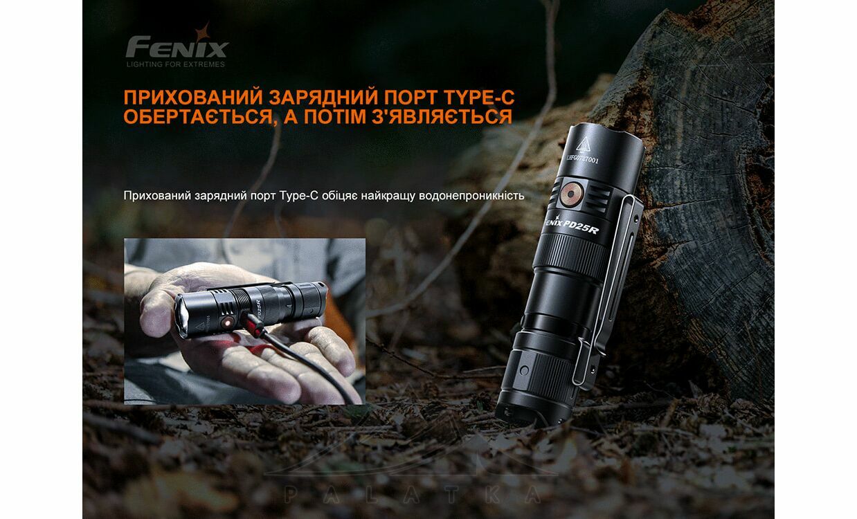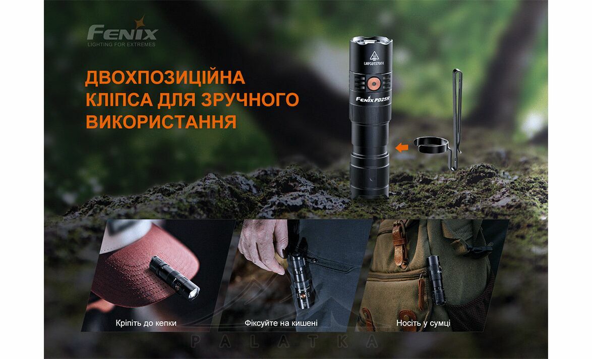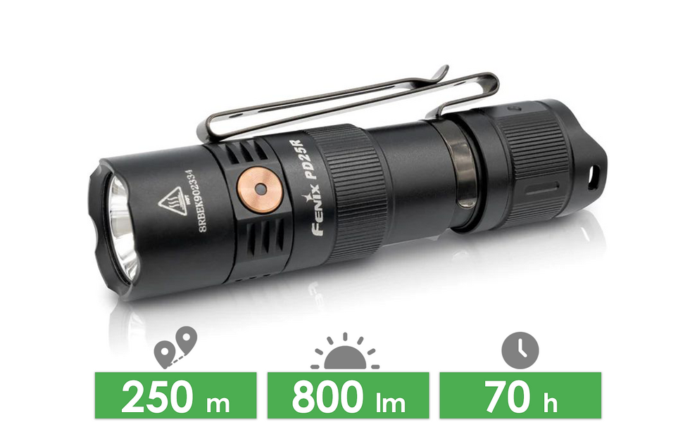 Fenix PD25R Rechargeable EDC — багатофункціональний та потужний компактний тактичний ручний ліхтар. Універсальний - підійде у якості екстреного освітлення, для кемпінгу, пішого туризму, пошукових робіт, патрулювання, та самозахисту.