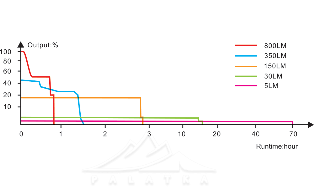 - Живлення від акумулятора 16340 (в комплекті), що забезпечує час роботи до 70 годин (в економному режимі).