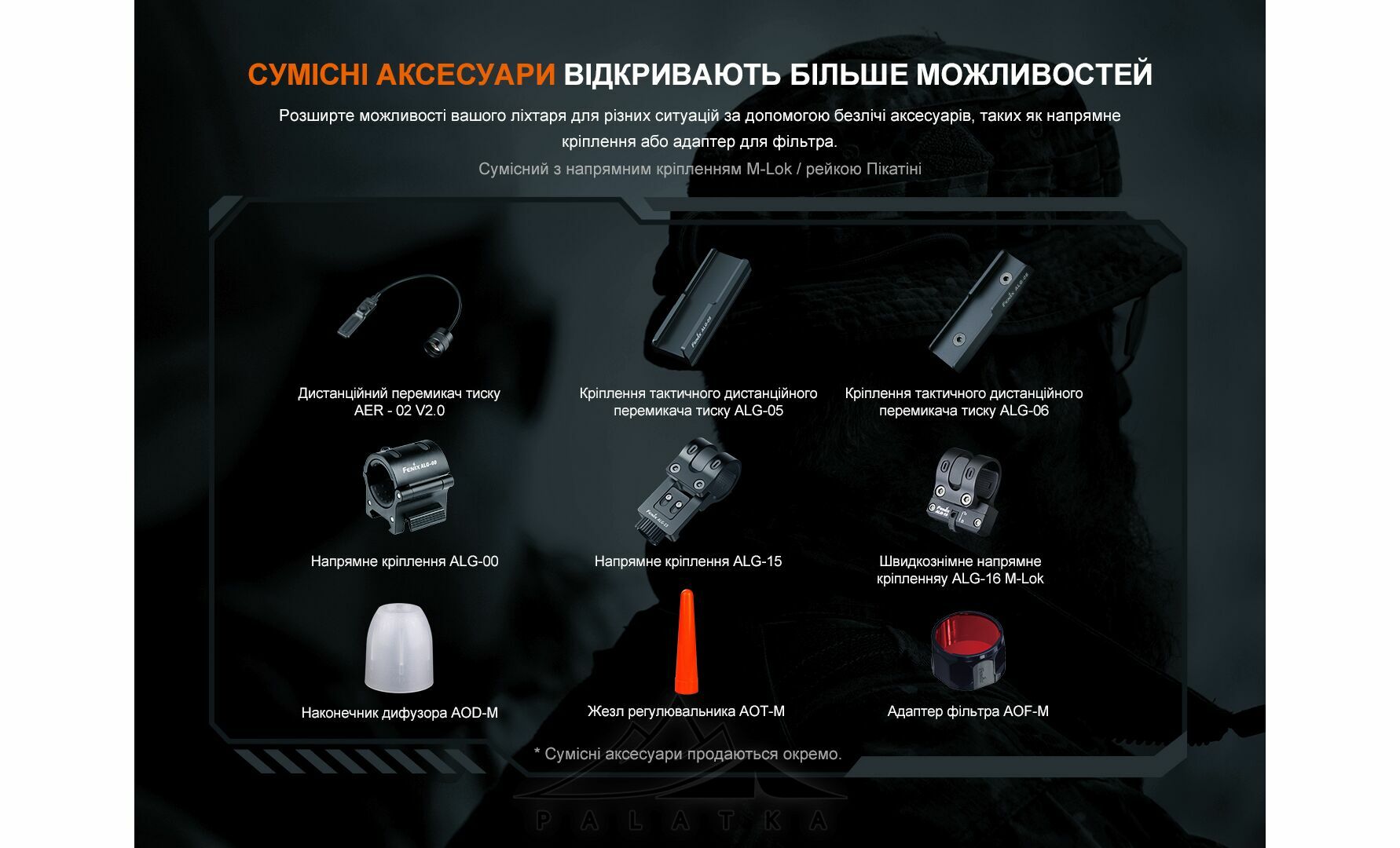 - Рекомендоване використання: тактичний — формат і керування заточені під швидке увімкнення та роботу в динамічних сценаріях.
