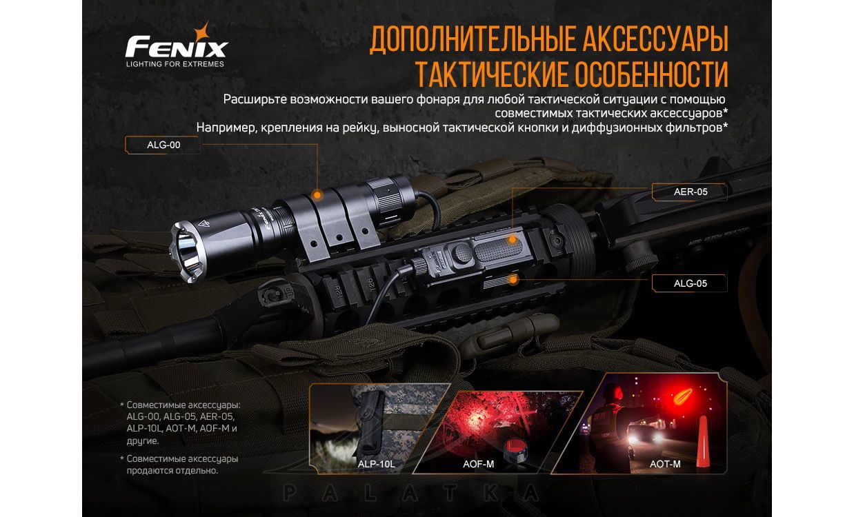 - Сумісний з тактичними аксесуарами - для кріплення на рейку, тактичної кнопки та дифузійних фільтрів.