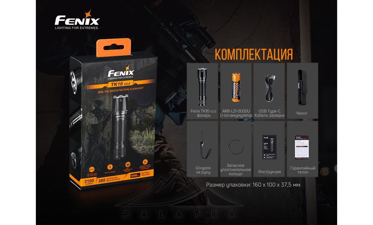 Fenix TK16 V2.0 — компактна тактична модель з міцним корпусом та удосконаленою системою APF. Надійний при роботі для тактичних цілей, самооборони, а також в аварійних ситуаціях.