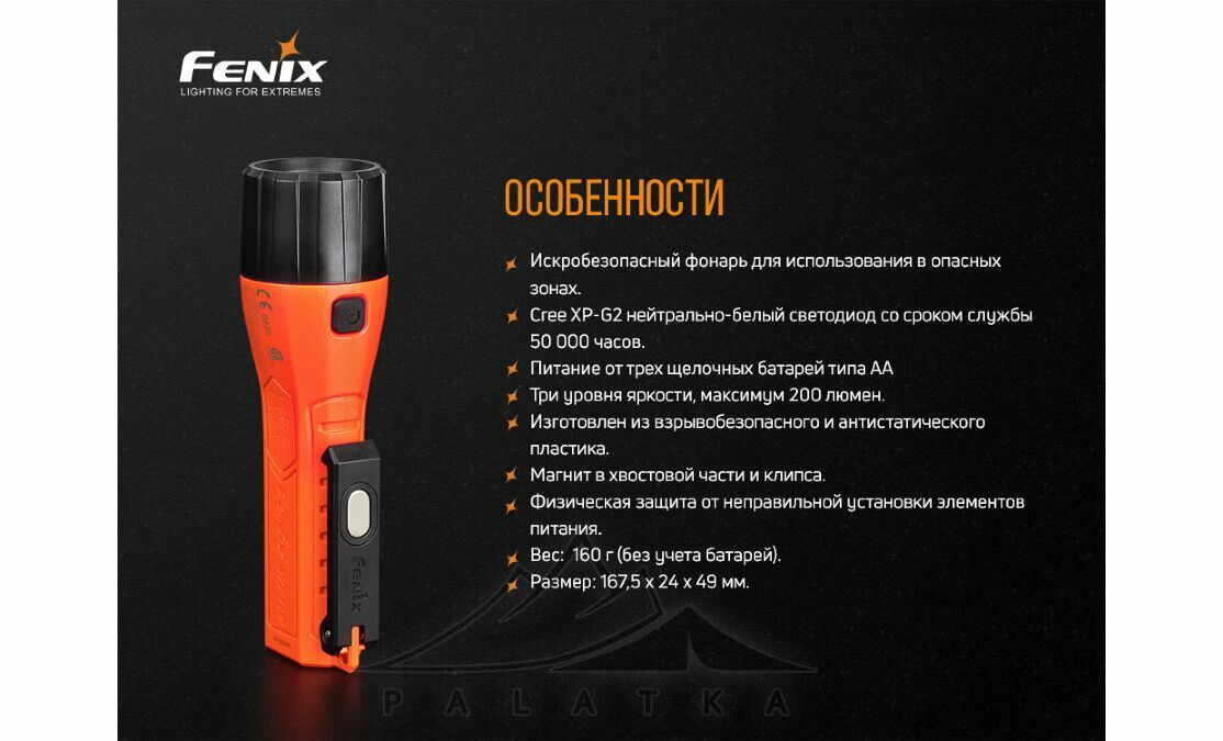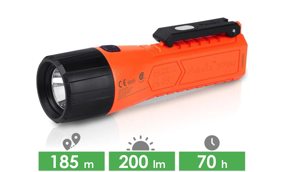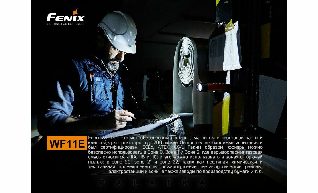 Ліхтар ручний Fenix WF11E — спеціалізована іскробезпечна модель для робочих задач, де важливі безпека, надійність і просте керування. Підійде для використання в умовах, де потрібен компактний ручний ліхтар із кліпсою, магнітною основою, тривалим часом роботи та хорошим захистом корпусу. Модель має 3 режими білого світла, працює від AA-батарейок і оснащена пластиковим корпусом із захистом IP67.