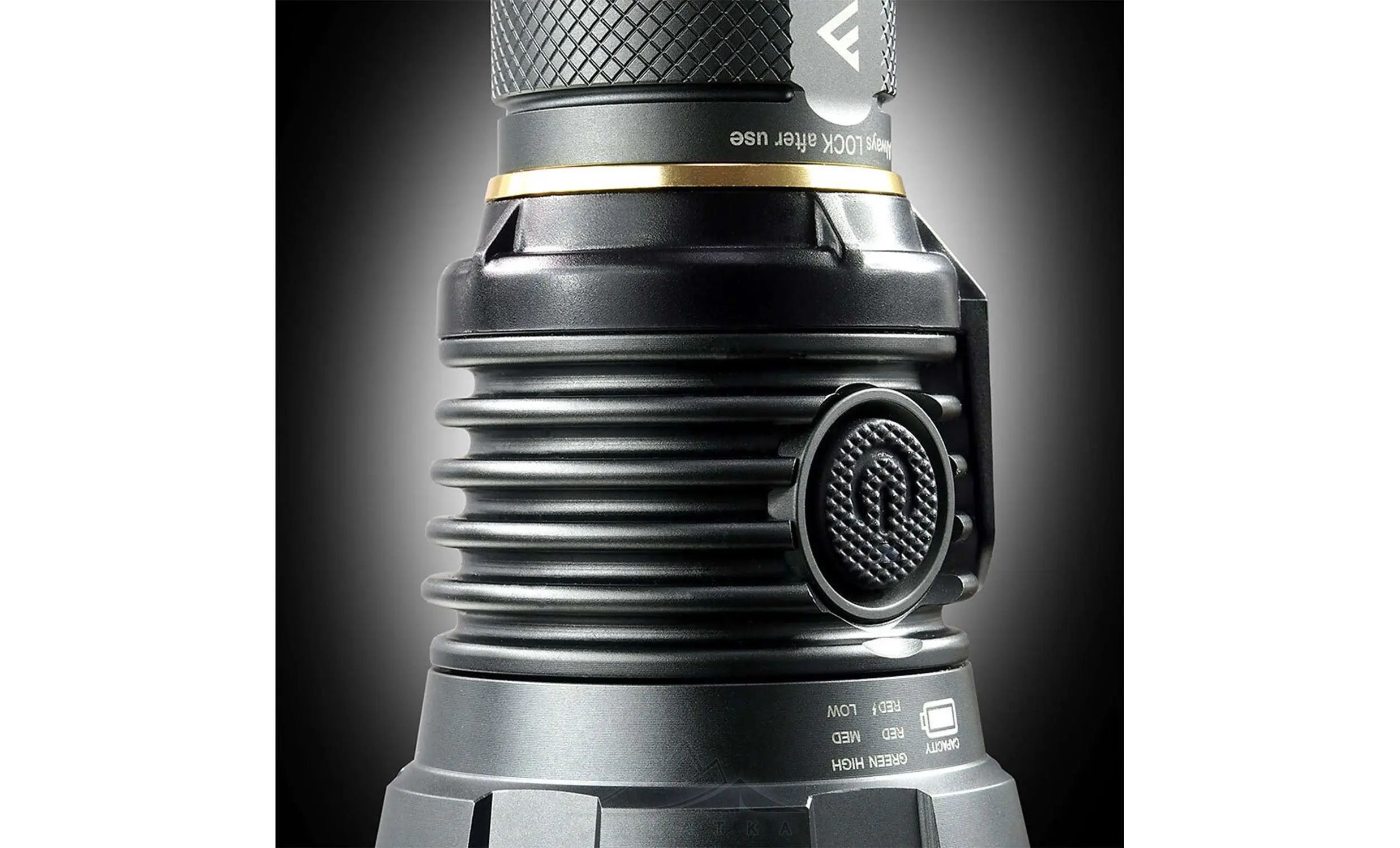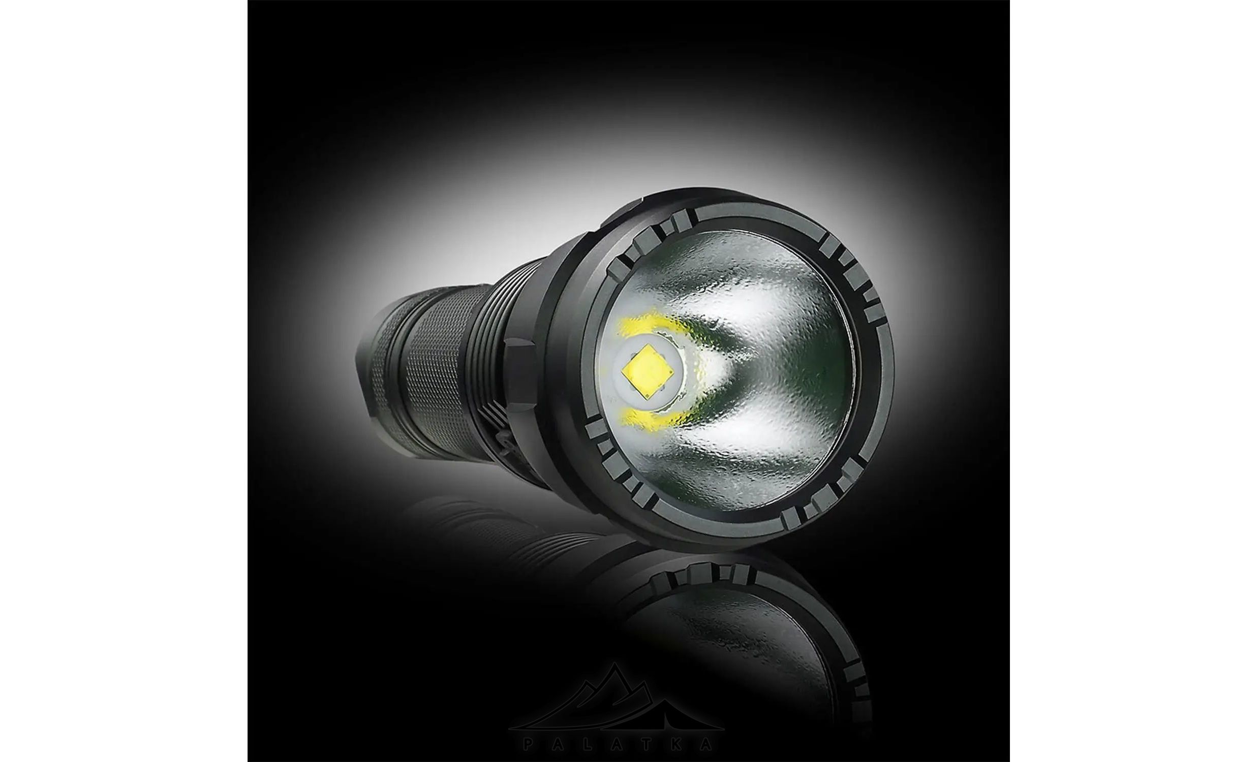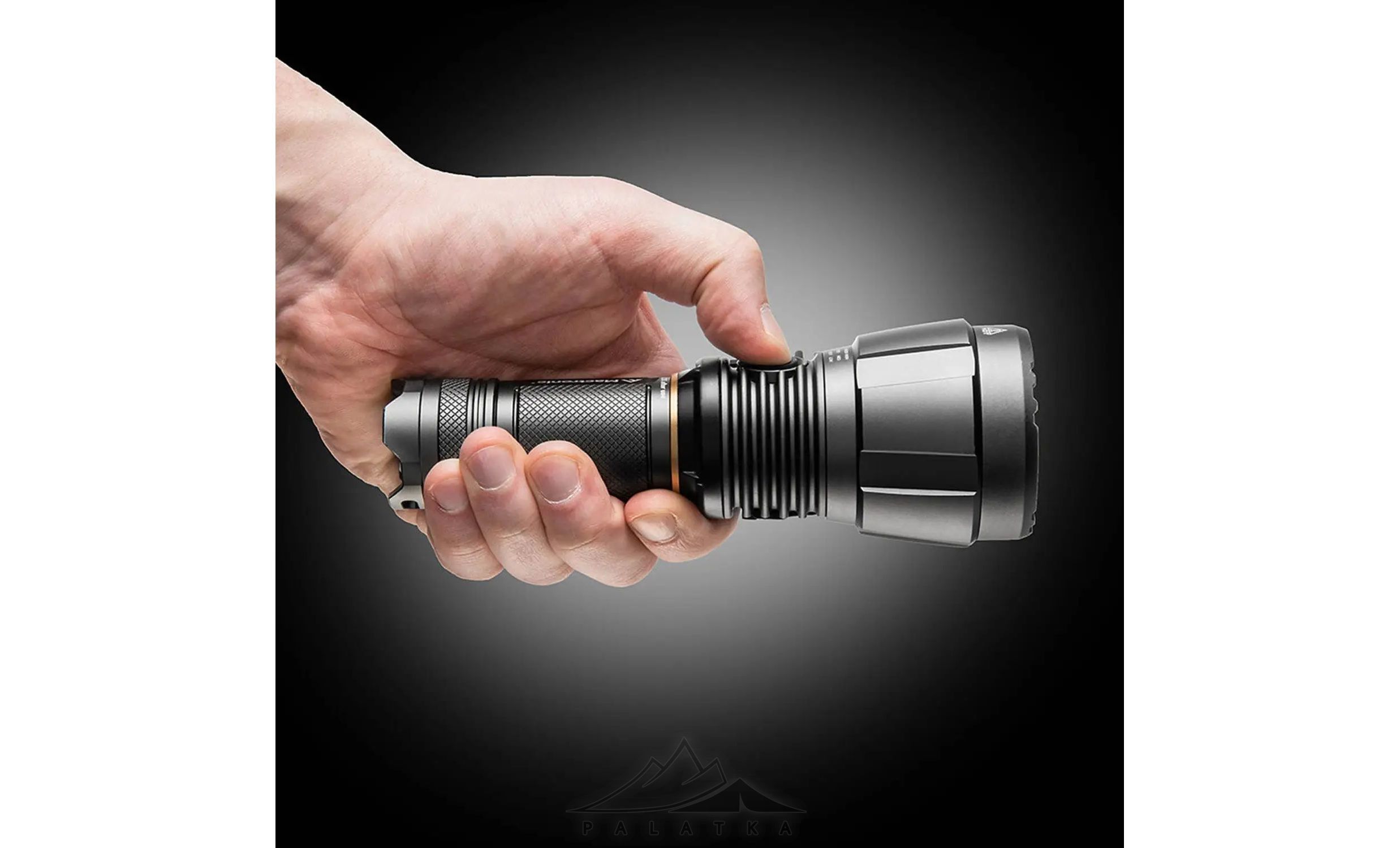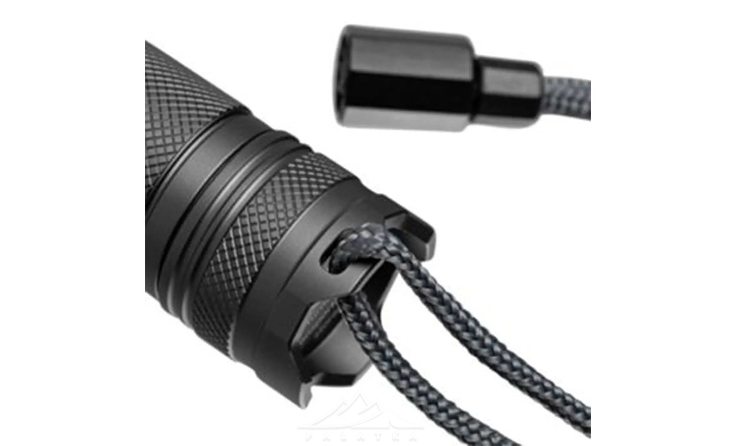 - Протиковзка ергономічна конструкція корпусу з текстурованою накладкою забезпечує надійне утримання ліхтаря.