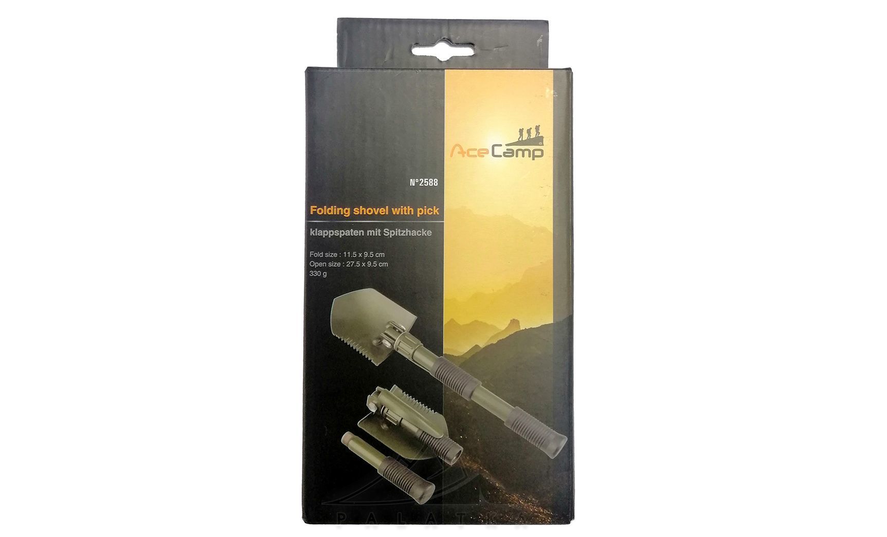 Невелика складна багатофункціональна лопата AceCamp Folding Shovel поєднує в собі 3 інструменти: лопату, пилку та льодоруб.
